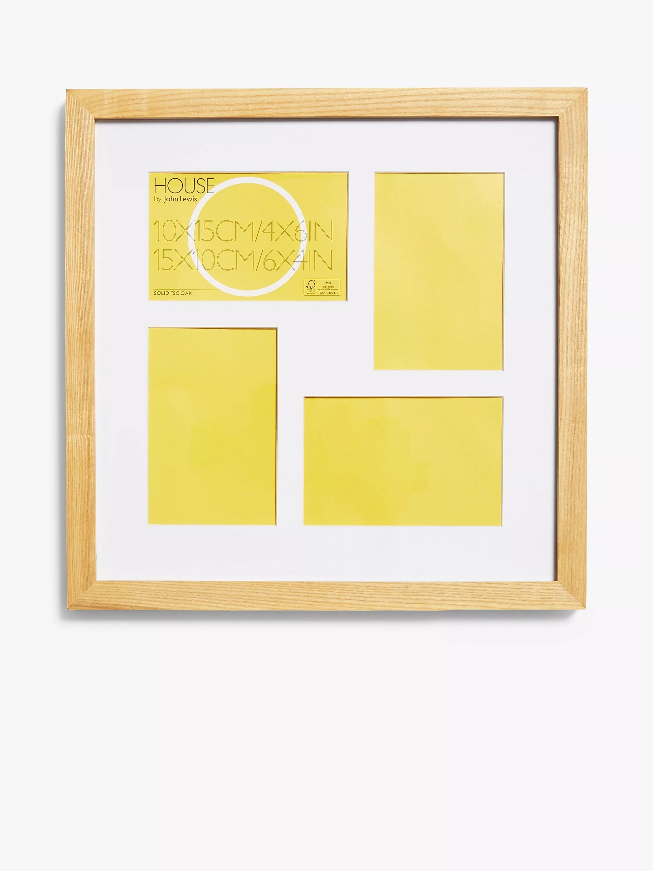 Dieser schlichte und stilvolle quadratische Bilderrahmen bietet Platz für zwei Porträtbilder und zwei Landschaftsbilder und ist zum Aufhängen an der Wand geeignet.