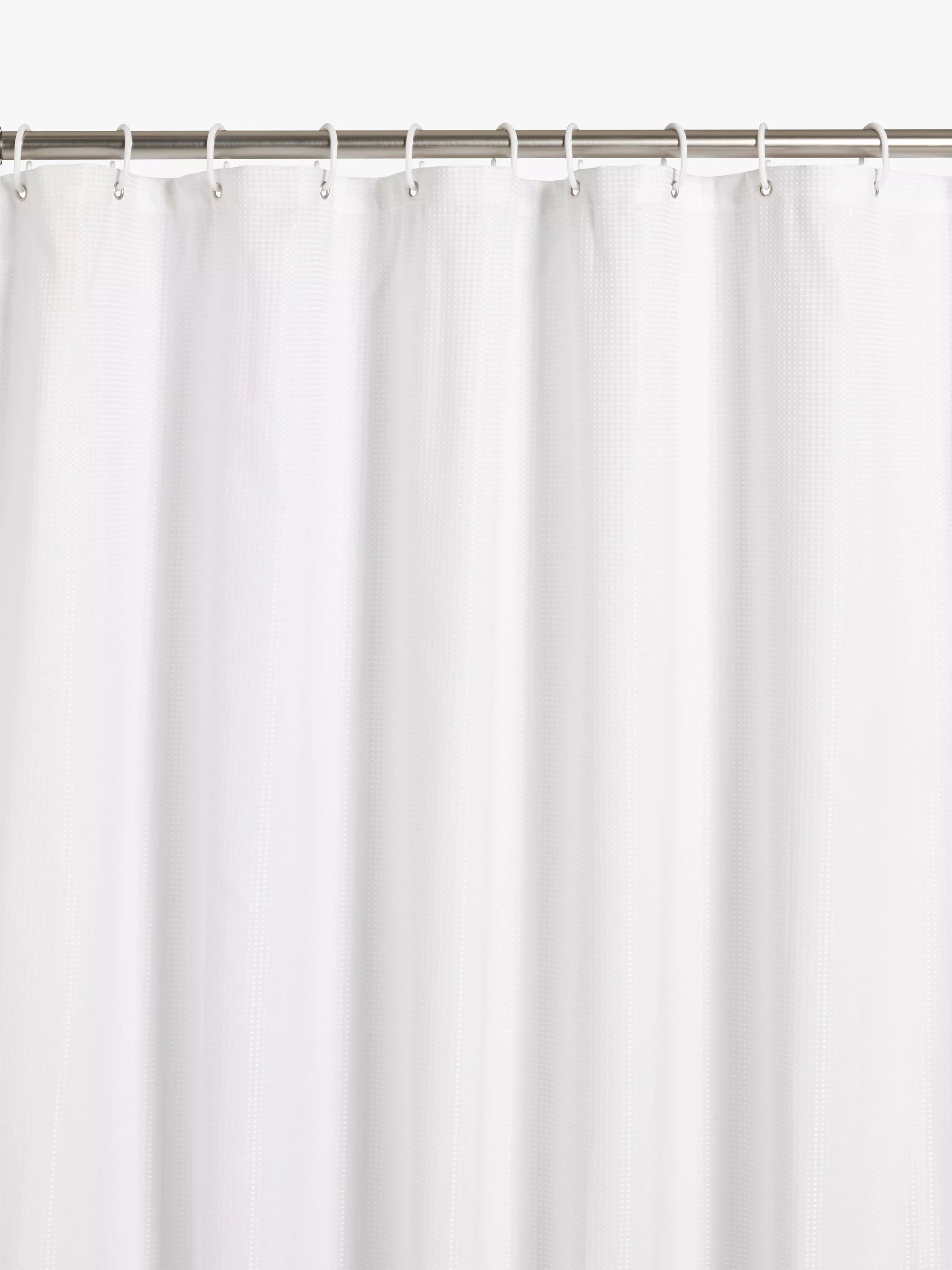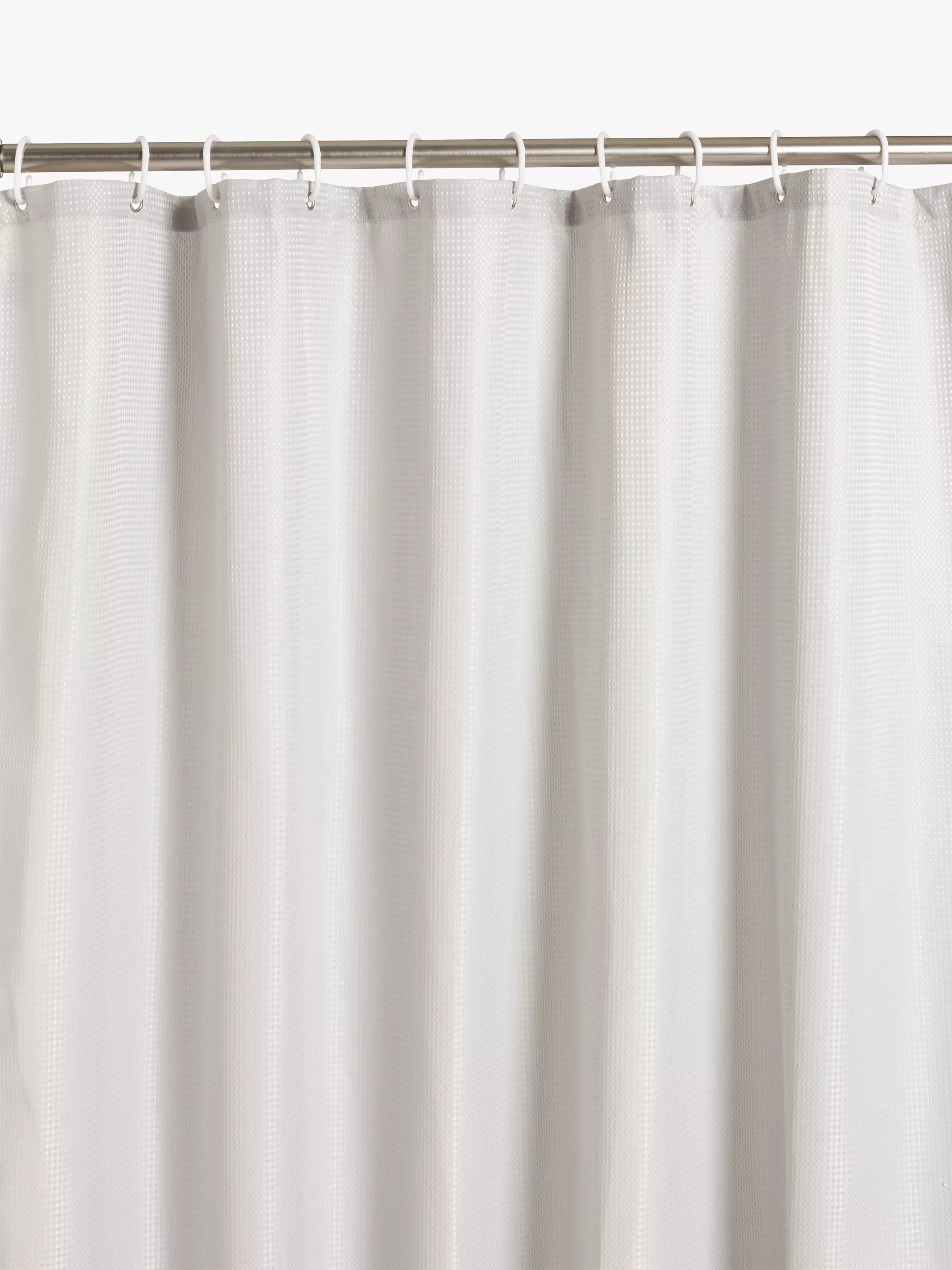 Dieser weiche Duschvorhang mit Waffelstruktur ist aus recyceltem Polyester hergestellt.
