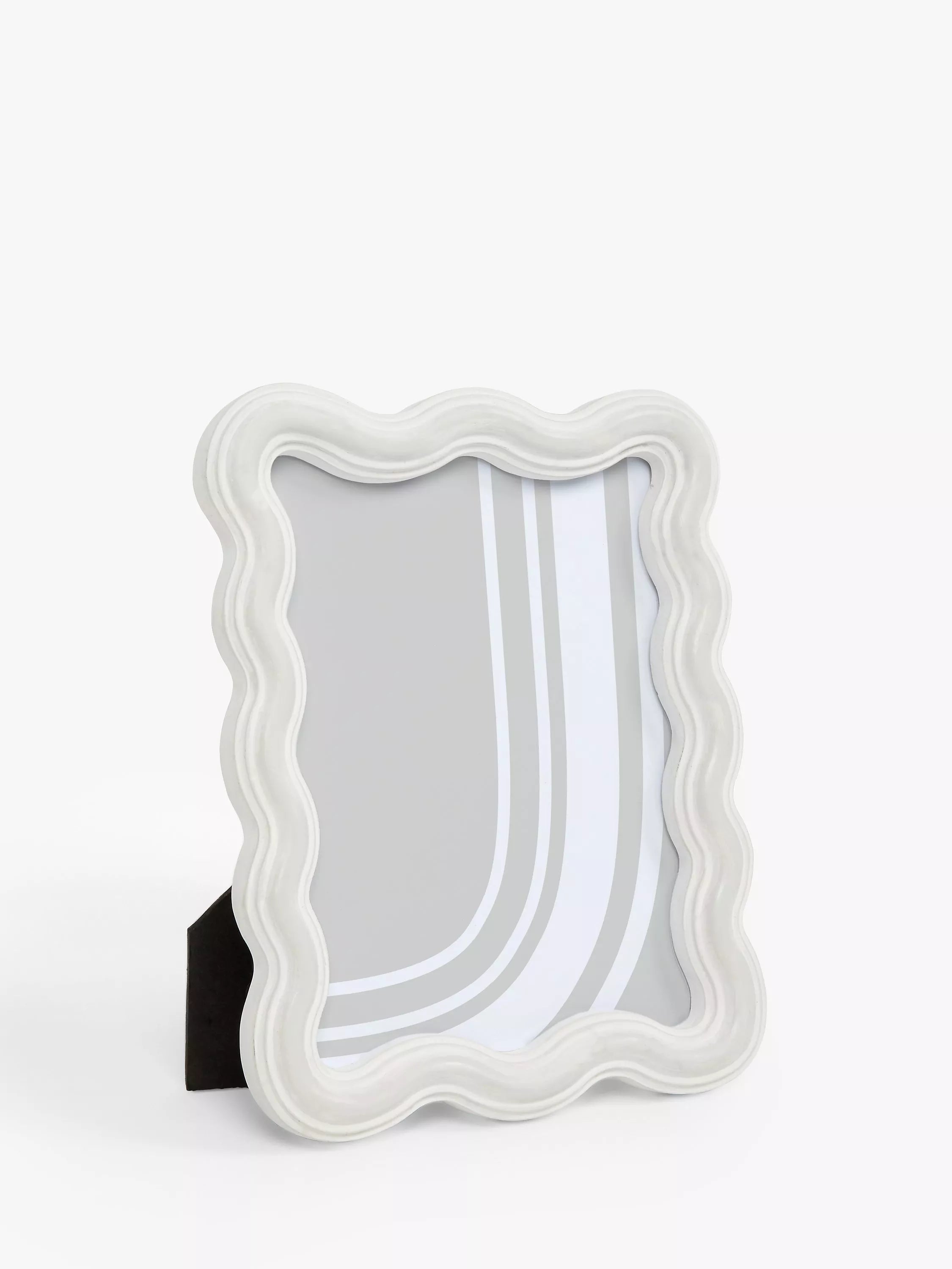 Dieser Bilderrahmen mit seiner wellenförmigen, strukturierten Oberfläche besticht durch sein modernes Design. Er ist verglast, mit einer Samtrückwand versehen und kann freistehend, vertikal oder horizontal aufgestellt werden.