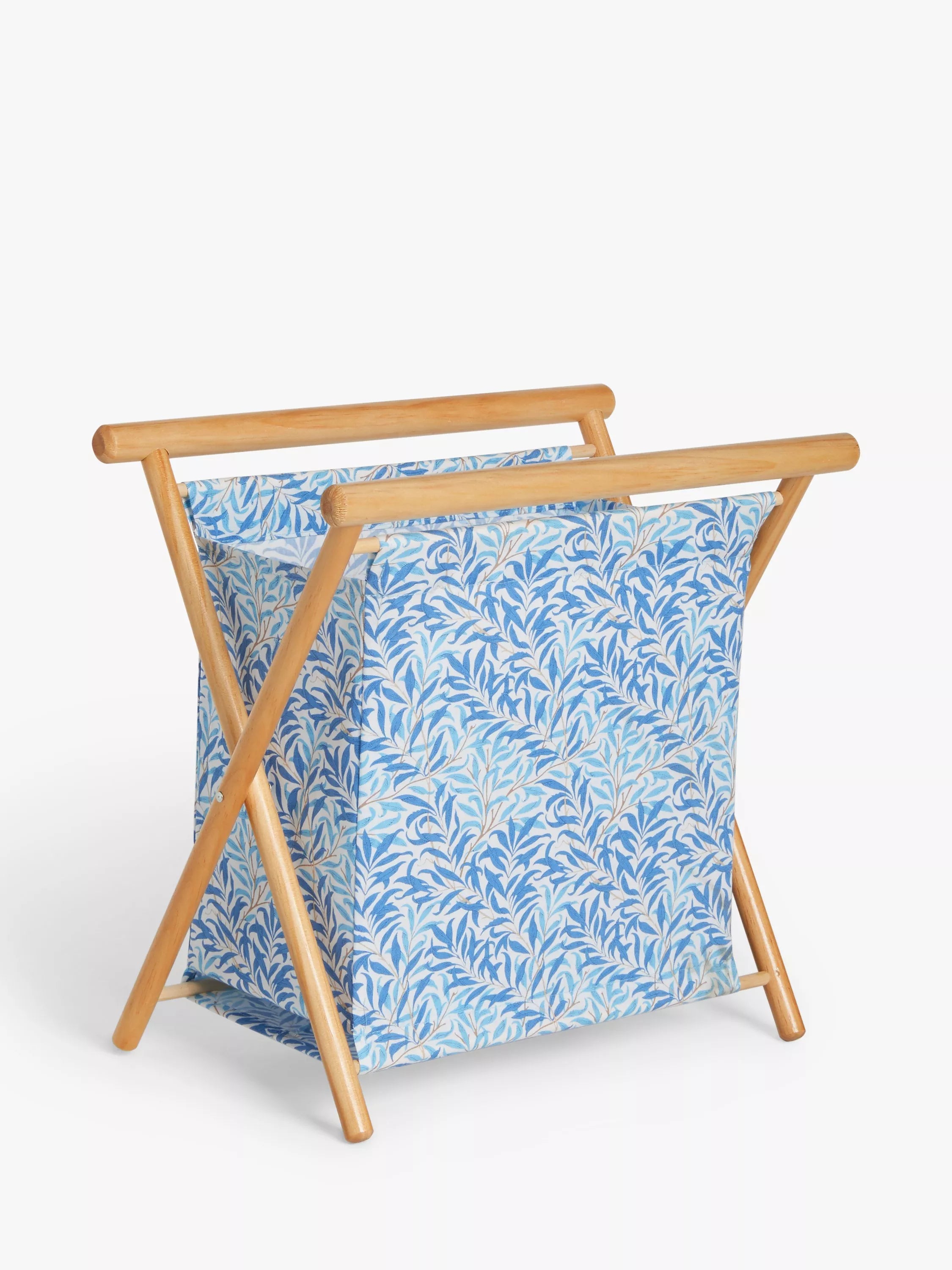 Dieser robuste und zusammenklappbare Rahmen aus Baumwolle und Holz verfügt über ein großes Fach zur Aufbewahrung von Garnen und Zubehör sowie einen flächendeckenden Willow Bough-Druck.