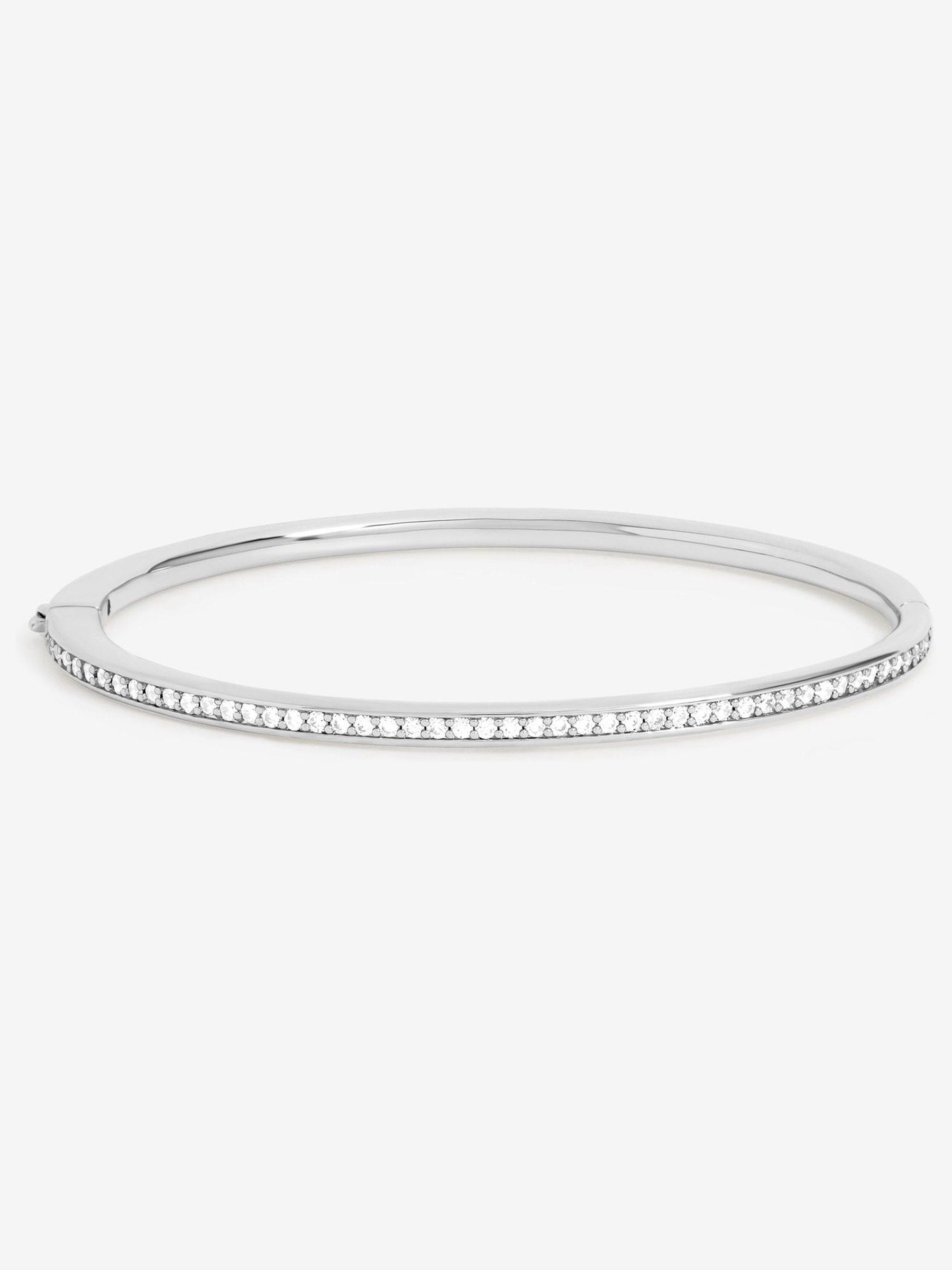 Unser silberplattierter Armreif mit Pavé-Fassung ist meisterhaft verarbeitet und verleiht Ihrem Alltagslook einen Hauch von Glamour. Funkelnde Pavé-Kristalle und die edle Silberplattierung machen dieses Schmuckstück zu einem echten Statement-Piece und verleihen jedem Outfit zeitlose Eleganz. Es ist die perfekte Ergänzung für jede Schmucksammlung. Verschluss: Karabinerverschluss. Breite: 50 mm. Länge: 204 mm. Material: Silberplattiertes Metall.
