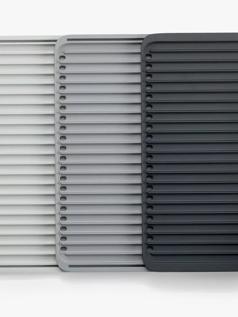 Diese praktische Abtropfmatte lässt sich auf mehr als die doppelte Größe ausziehen und bietet so überall dort, wo Sie sie benötigen, eine große Abtropffläche. Einfach auf eine ebene Fläche legen und an den Enden ziehen, um sie zu erweitern.