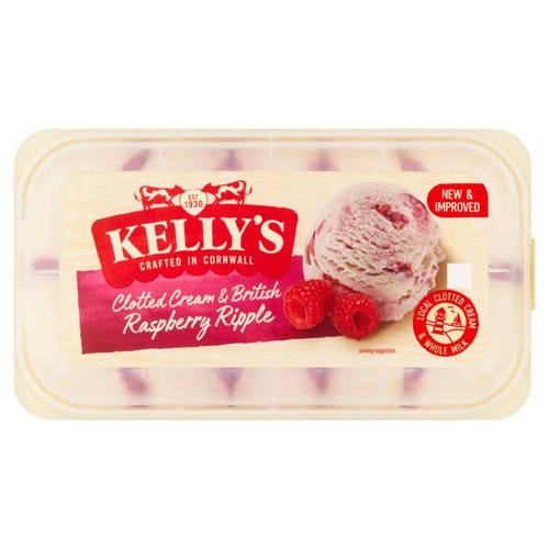 This luscious ice cream features creamy clotted cream blended with British raspberry ripple. Kellys has proudly made proper Cornish Ice Cream since 1930, focusing on quality ingredients. The flavour balances rich creaminess with fruity sweetness and texture from real raspberry pieces.