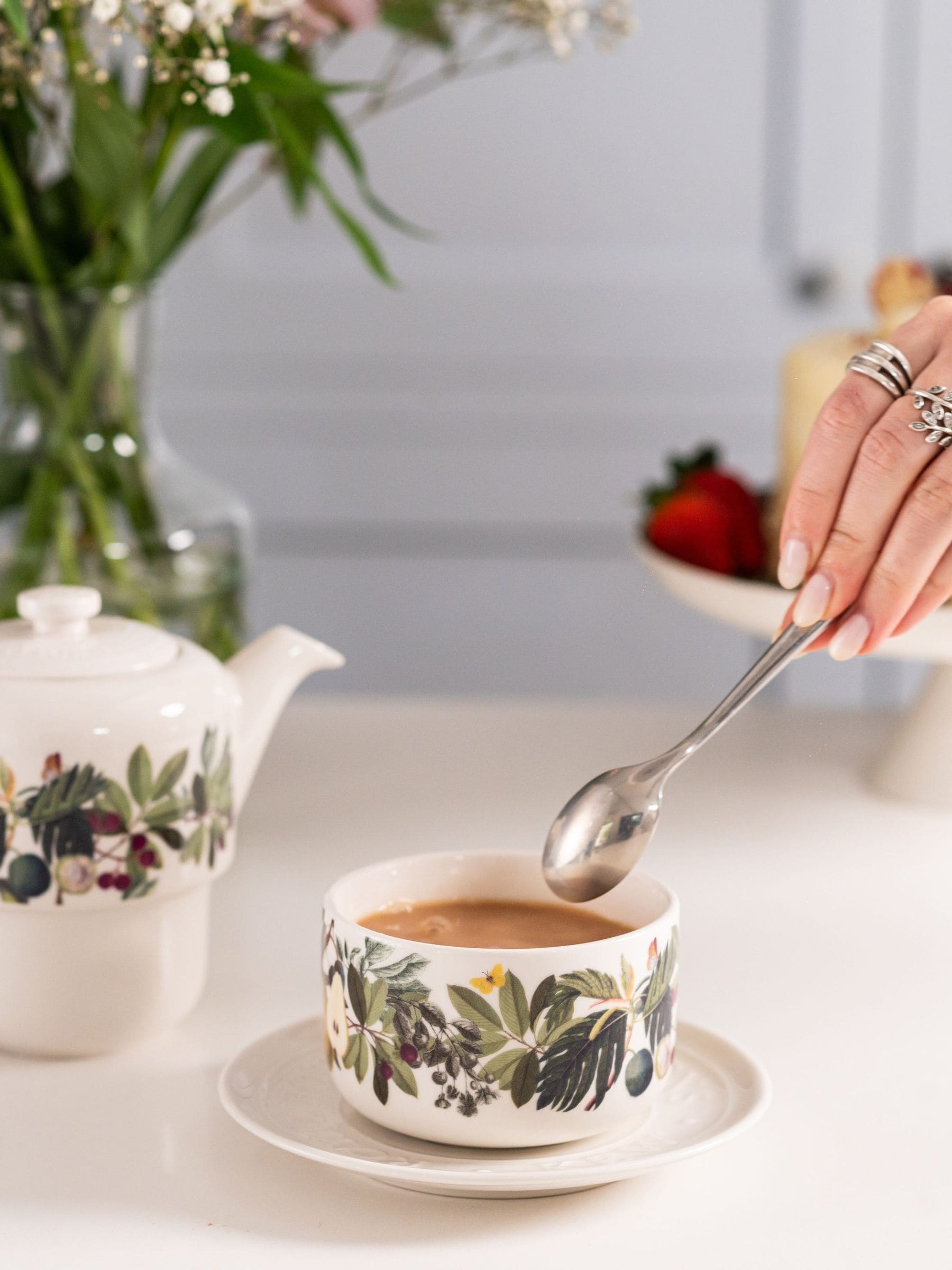 Holen Sie sich die Natur ins Haus mit dem Bloom Teeservice für eine Person aus den Royal Botanic Gardens, Kew. Dieses edle Porzellanservice mit den detailreichen Frucht- und Blumenmotiven aus den historischen Archiven von Kew lädt Sie ein, jede Teepause inmitten der leuchtenden Farben und Schönheit der Natur zu genießen. Präsentiert in einer eleganten Geschenkbox, lässt sich dieses Service ideal mit der passenden Etagere ergänzen – für einen wunderschönen Nachmittagstee im botanischen Stil. Spülmaschinenfest.