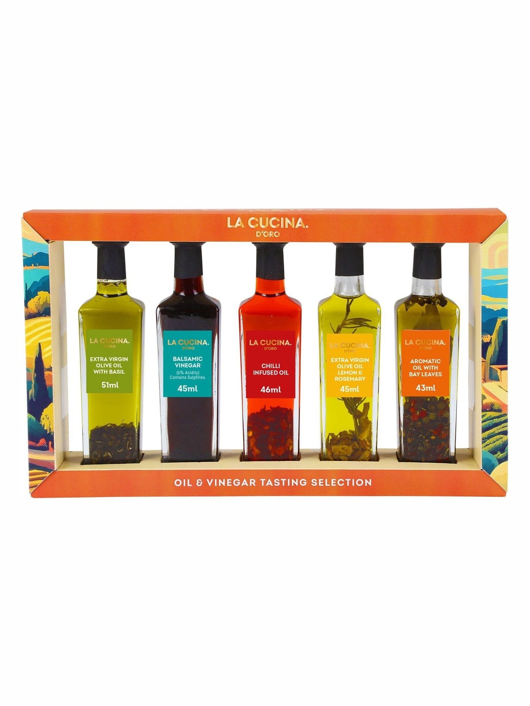 Verwöhnen Sie Ihre Lieben mit diesem Öl- und Essig-Verkostungsset. Es enthält aromatisierte native Olivenöle extra mit Basilikum, Zitrone, Rosmarin, Lorbeer und einer wärmenden Chili-Note sowie Balsamico-Essig – perfekt zum Dressing, Dippen oder Braten. Ein ideales Weihnachtsgeschenk für Feinschmecker, Hobbyköche und alle, die gerne Gourmetgerichte zubereiten.
