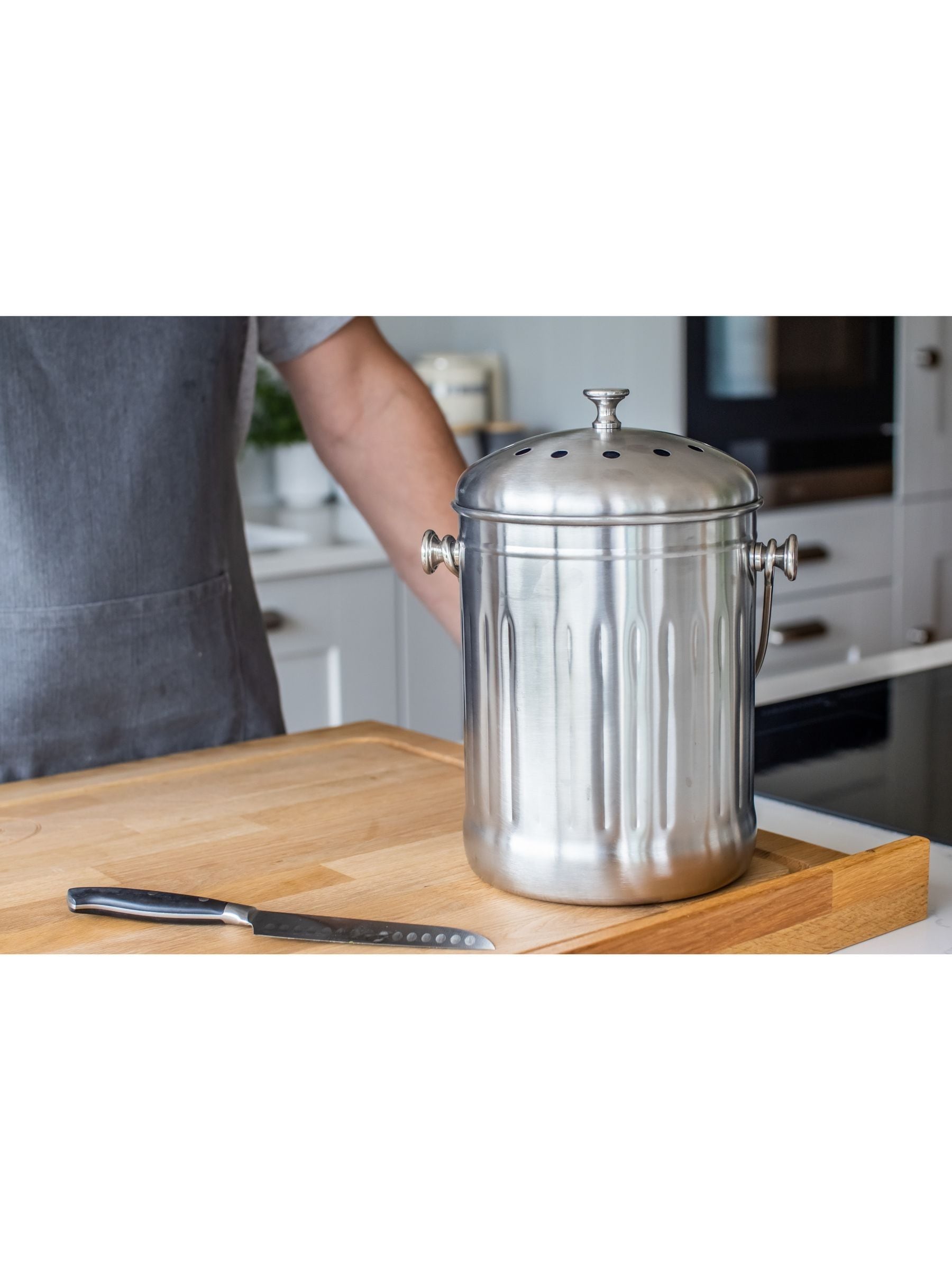 Kompostieren macht Spaß. Aber Essensreste zum Komposthaufen schleppen? Eher nicht. Dieser elegante Bioabfallbehälter aus Edelstahl ist die Lösung. Stellen Sie ihn einfach auf den Küchenboden oder die Arbeitsplatte, und er sammelt Ihre Reste zuverlässig ein, bis Sie sie kompostieren möchten.