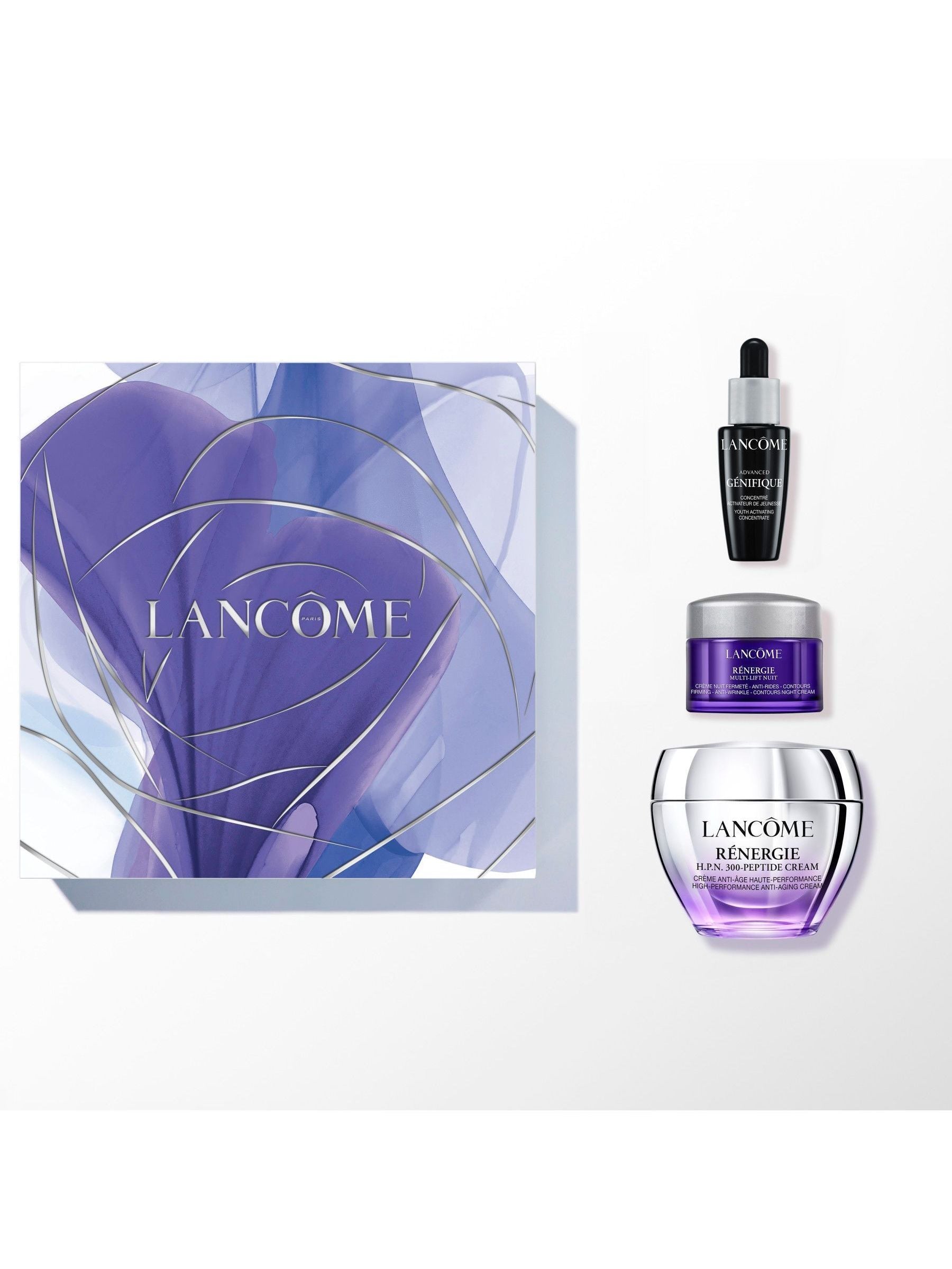Add the following to the TOV - This gift set includes the following beauty favorites: - RÉNERGIE H.P.N. 300-PEPTIDE CREAM 50ml - ADVANCED GÉNIFIQUE ANTI-AGING SERUM 10ml - RENERGIE NIGHT CREAM 15ml. Directions Apply usinig directions on the packaging.