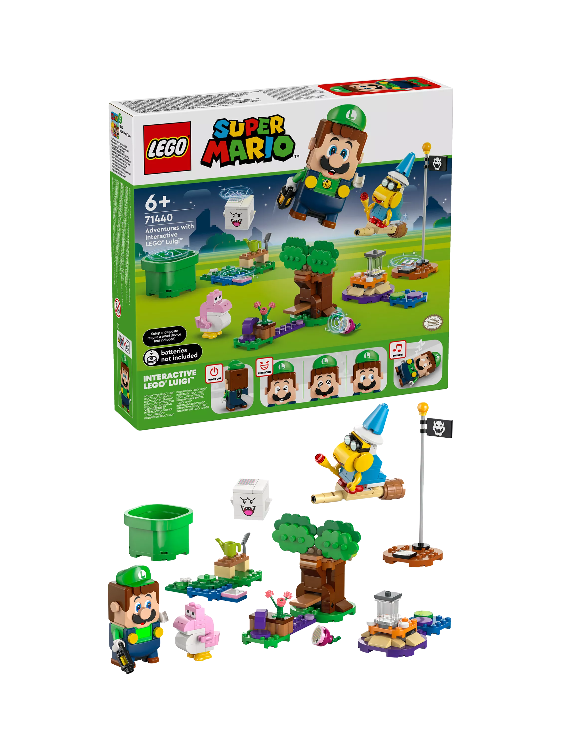 Erlebe spannende Gartenabenteuer mit dem interaktiven LEGO® Luigi™ in diesem LEGO® Super Mario™ Spielset für Kinder (71440). Das Set ist ein tolles Nintendo® Geschenk für Jungen, Mädchen und Gamer ab 6 Jahren und enthält eine interaktive LEGO Luigi Figur sowie Kamek, einen rosa Baby-Yoshi und einen Buu Huu. Reise von der Startröhre zum Zielpfosten durch 3 Gartenbauten, löse digitale Reaktionen von LEGO Luigi aus und sammle unterwegs Münzen. Triff den rosa Baby-Yoshi und schnapp dir ein paar Werkzeuge. Besiege den Buu Huu, der sich im Baum versteckt, und „iss“ die Frucht. Stampfe auf die Pilzplattform, um Kamek umzuwerfen und auf seinem Besen davonzufliegen.