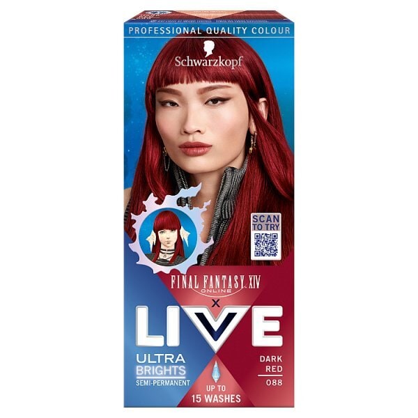 new schwarzkopf live ultra brights dark red 026 is a semipermanent vegan hair dye from the schwarzkopf live x final fantasy xiv online collection recommended for medium blonde light brown hair