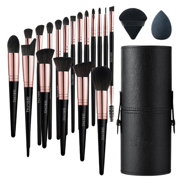 This professional 18-piece black set contains essential tools for achieving a natural appearance in your cosmetic routine. It is suitable for various applications, including foundation, contouring, blending, eye shading, and highlighting.