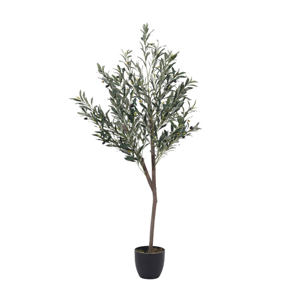 Biegsame Zweige ermöglichen eine individuelle Formgebung, die sich Ihren Gegebenheiten anpasst. Kein manuelles Pflegen erforderlich – spart Zeit und Energie. Inklusive austauschbarem, schwarzem Kunststoff-Blumentopf. Spezifikationen: Gesamthöhe 155 cm, Topfgröße 19 cm Durchmesser x 175 cm Länge, Aufstellung: Boden, Pflanzenart: Olivenbaum, Pflanzenfarbe: Grün, Pflanzenmaterial: Stoff, Pflanzgefäßfarbe: Schwarz, Topfmaterial: Kunststoff. Lieferumfang: 1 x künstlicher Olivenbaum, 1 x Kunststofftopf.