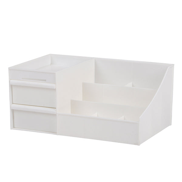 The 2 drawers on the left side can slide smoothly for ease of use Designed with several compartments for upgraded classification Constructed from odourless and durable plastic, easy to keep clean Specifications Size: 28cm W x 17cm D x 13cm H Product Type: Makeup Organizer Primary Material: Plastic Mount Type: Freestanding Compartments: Yes Drawers Included: Yes Number of Drawers: 2 Finish: White Package Included 1 x Makeup Organizer Package Specifications Package Dimensions (WxDxH): 29 x 19 x 14cm Gross Weight: 0.48kg