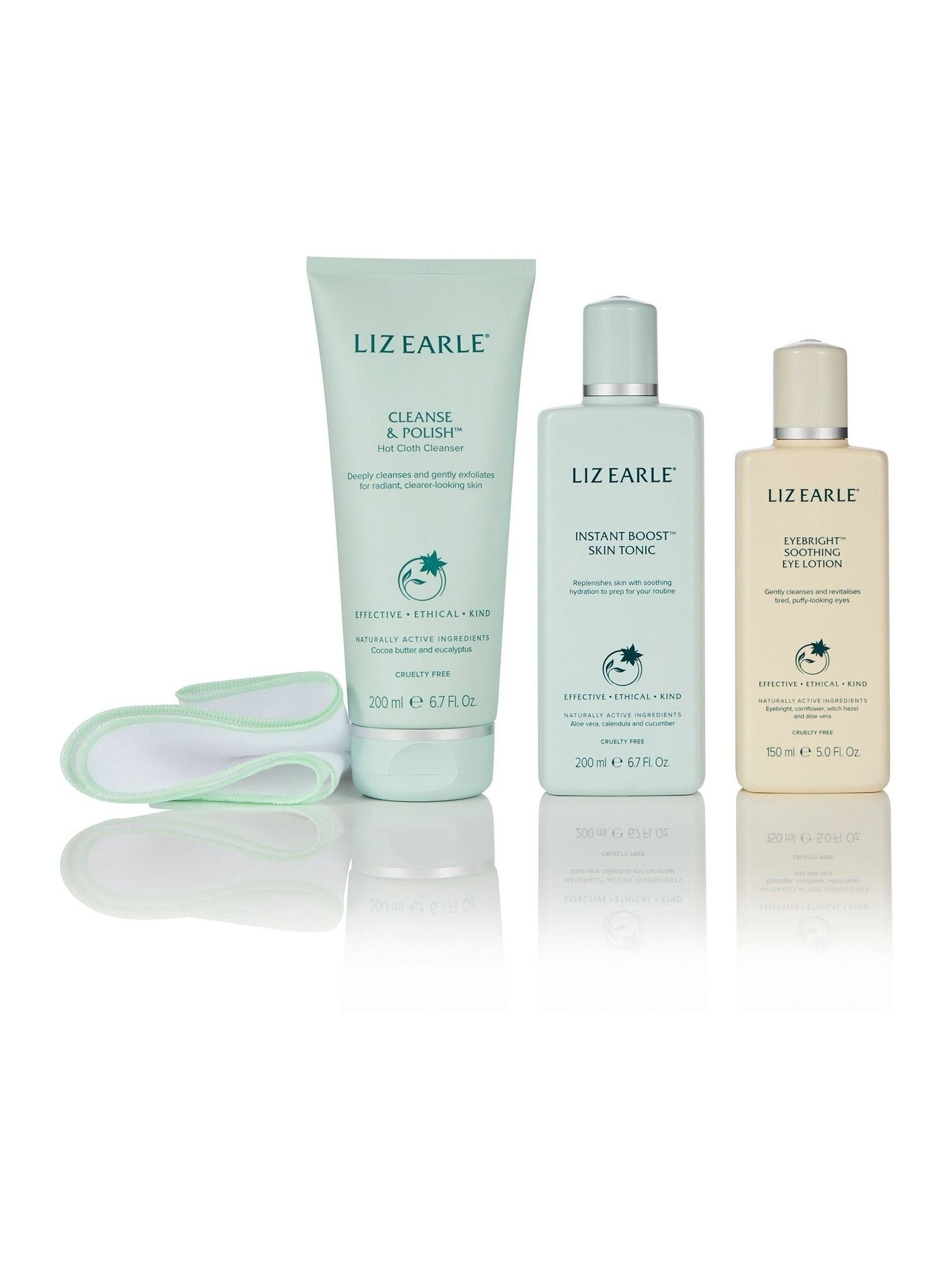 Begin with your Cleanse & Polish™ Hot Cloth Cleanser. This award-winning formula comes packed with antioxidant-rich rosemary and nourishing cocoa butter, and, when used in tandem with our Pure Cotton Cloth, melts away stubborn make-up with ease. Post-cleanse, replenish skin with moisture using Instant Boost™ Skin Tonic. Finally, reach for Eyebright™ Soothing Eye Lotion. This gentle, plant-powered blend combines cooling cornflower extract with hydrating aloe vera to help smooth, soothe, and visibly revitalise tired-looking eyes.