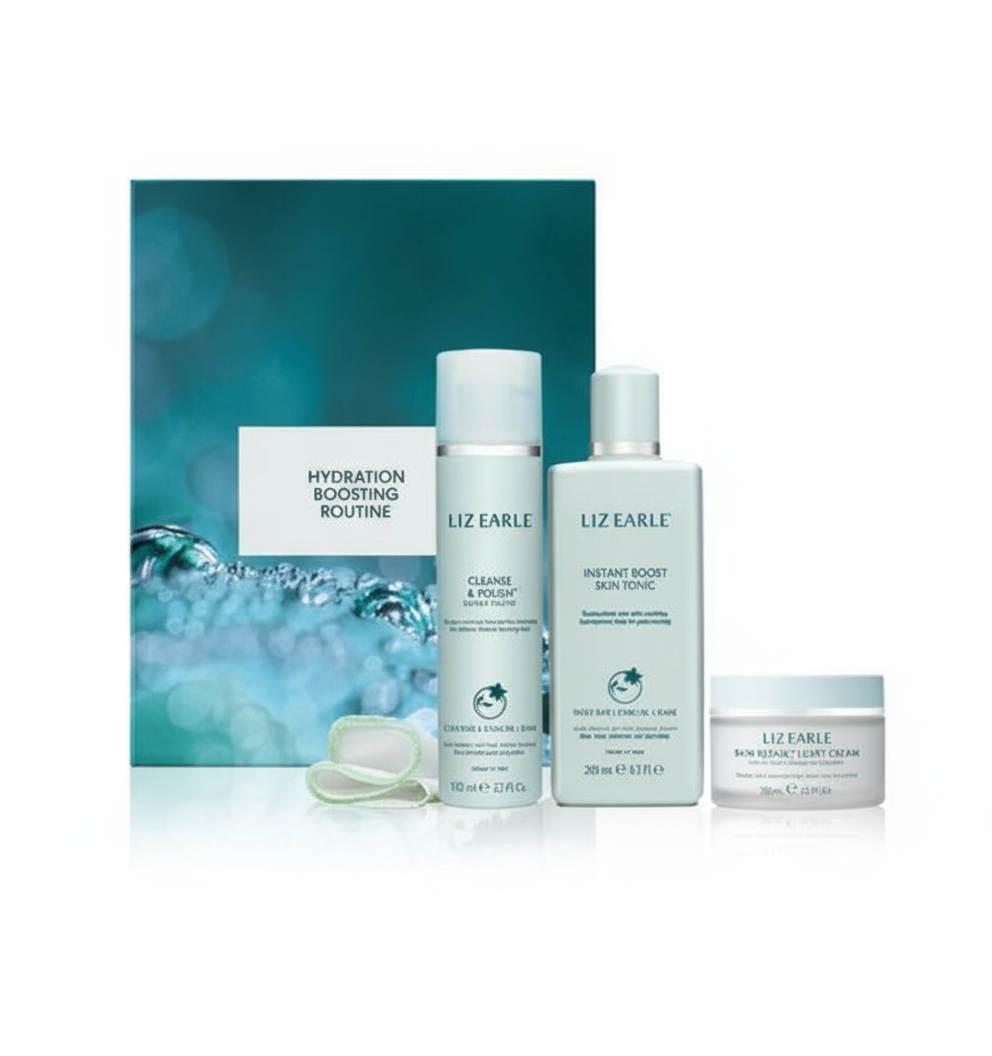 Das Liz Earle Hydration Boosting Ritual 3-teilige Set bietet eine vollständige und effektive Hautpflege für die tägliche Anwendung. Es enthält das 200 ml Cleanse & Polish, das 200 ml Instant Boost Skin Tonic und die 50 ml Skin Repair Light Cream. Dieses feuchtigkeitsspendende Trio reinigt, tonisiert und pflegt alle Hauttypen gründlich.