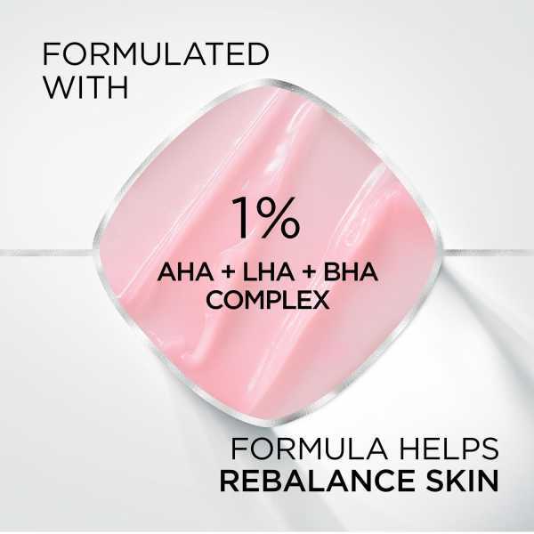 • Formulated with Derm Actives, including a 1% AHA, LHA, and BHA complex.