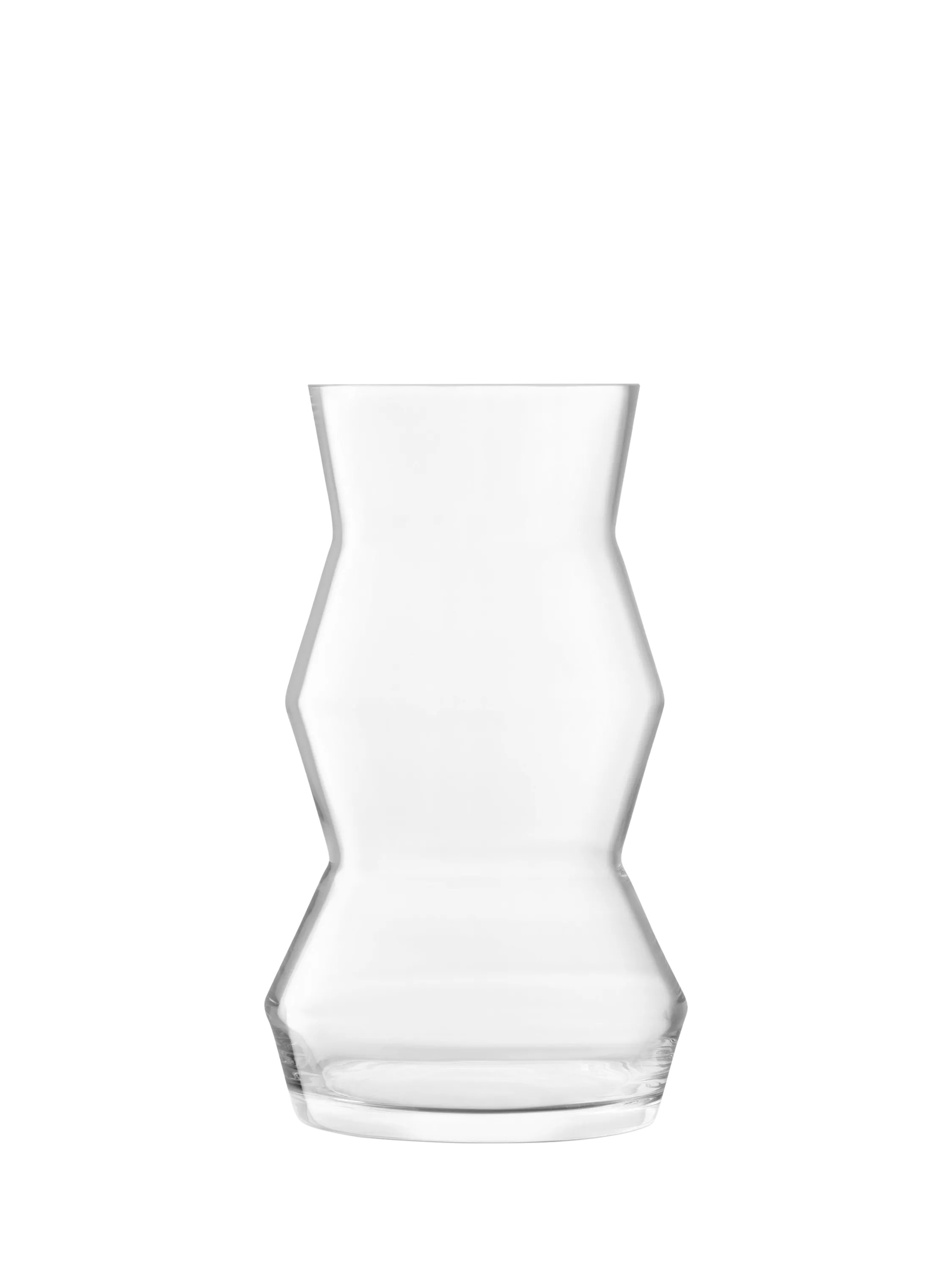 Diese moderne, mundgeblasene Glasvase besticht durch ihre markante, kantige Form. Ein formschönes und vielseitiges Stück, das sowohl als Vase als auch als Laterne für Stumpenkerzen verwendet werden kann.