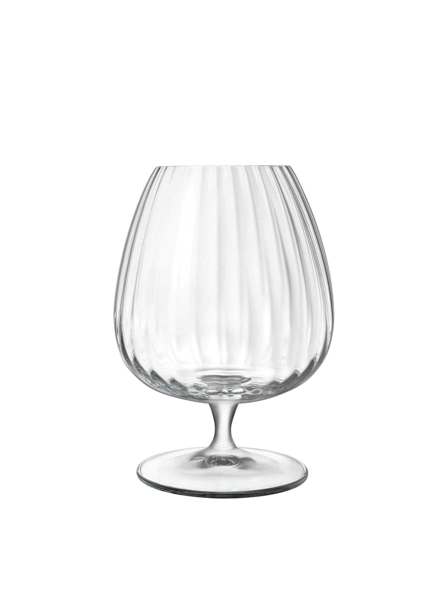 Luigi Bormioli Optica Cognac, 4 x 465 ml. Zarte Rillen zieren jedes Glas und verleihen jedem geselligen Beisammensein eine dezente Eleganz. Dank der SON.hyx-Technologie besticht das Glas durch kristallklare Klarheit und extreme Bruchsicherheit. Spülmaschinenfest. Warum sollten Sie sich für unsere Luigi Bormioli Optica Serie entscheiden? Wunderschön gefertigte Gläser für jeden Anlass. Die innovative SON.hyx-Technologie sorgt für höchste Bruchsicherheit. Titanverstärkte Glasstiele garantieren Abriebfestigkeit und besondere Härte. Spülmaschinenfest für eine einfache Reinigung.