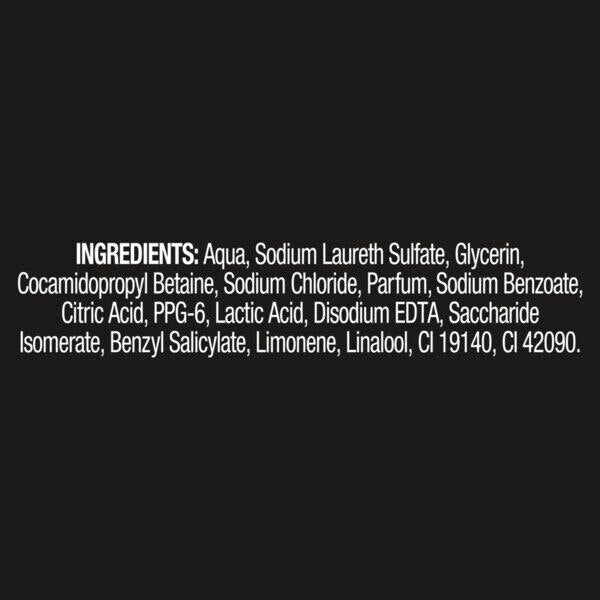 ProduktspezifikationAqua, Sodium Laureth Sulfate, Glycerin, Sodium Chloride, Cocamidopropyl Betaine, Parfum, Sodium Benzoate, Citric Acid, Lactic Acid, PPG-6, Disodium EDTA, Saccharide Isomerate, Benzyl Salicylate, Limonene, Linalool, CI 19140, CI 42090.