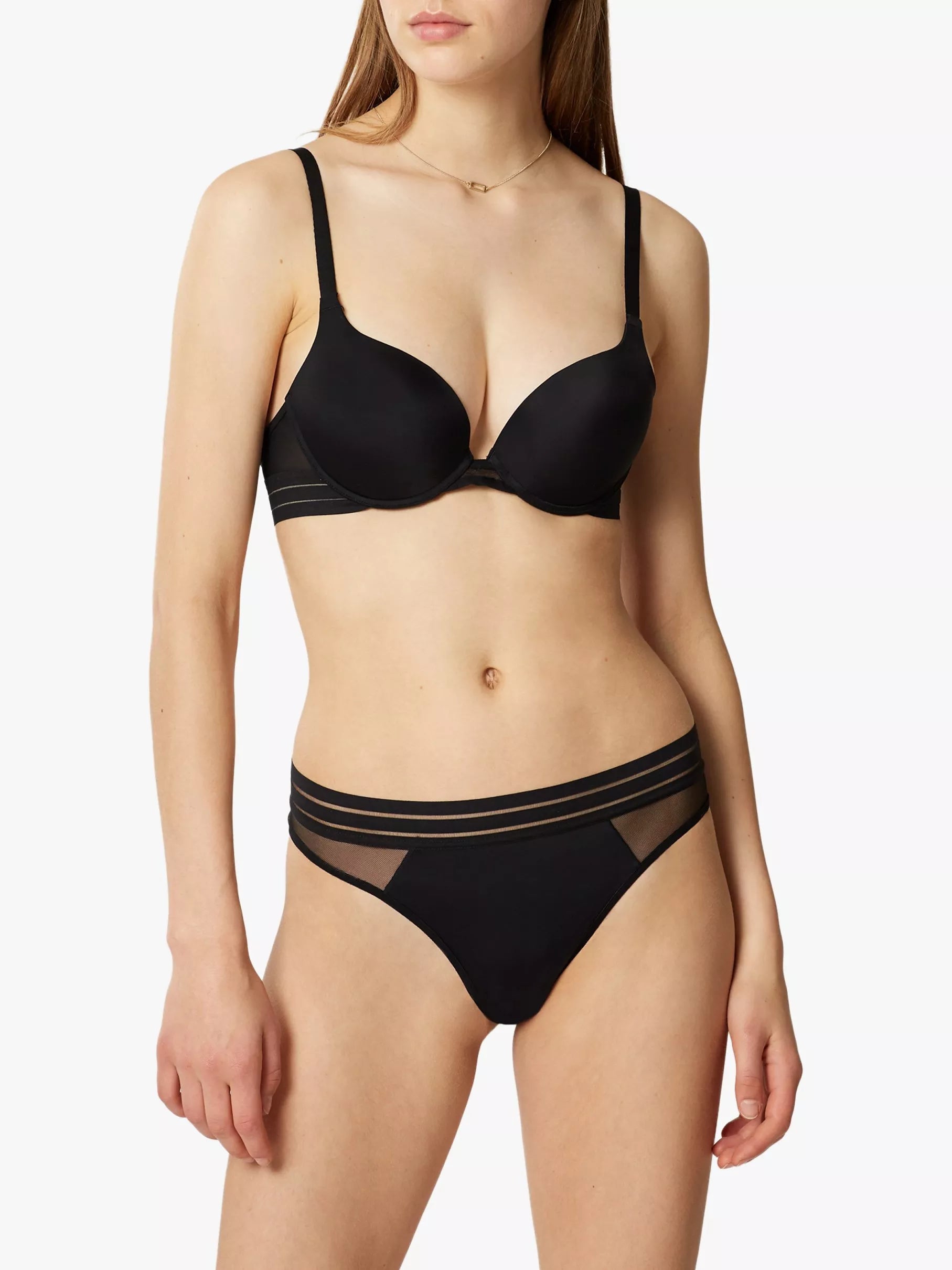 Dieser BH aus ultrafeinem Mesh-Gewebe schmiegt sich wie eine zweite Haut an den Körper an und bietet dank weicher, voluminöser Cups aus glattem Jersey optimalen Halt. Die Bügel sorgen für zusätzlichen Halt. Passend dazu gibt es einen Slip.