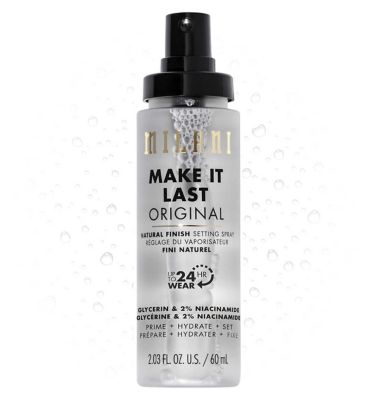 The Milani Make It Last setting spray offers a multi-functional solution designed to prepare, hydrate, and lock your makeup in place. This original formula is engineered to provide a natural finish that looks seamless on the skin. It combines primer, setting agent, and hydrator into one convenient bottle for efficient application.