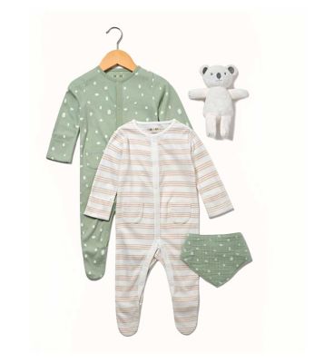 This Maybe Baby two-pack sleepsuit set offers comfort and practicality for new parents or as a thoughtful present for a baby arrival. Including coordinated items, this collection simplifies dressing routines while maintaining a charming aesthetic suitable for everyday use.