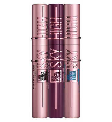 This essential collection presents three distinct Maybelline Sky High mascaras designed for varied application needs and styling preferences. You receive two versions of the popular Sky High formula alongside the Sensational Sky High mascara variant in this curated set. This convenient package allows for versatile eye enhancement using trusted and proven cosmetic formulations from the brand.