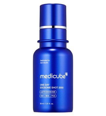 Medicube One Day Exosome Shot 2000 is a high-performance treatment designed for intensive skin care. This ampoule utilises advanced Lacto Exosome technology for targeted action. It delivers premium care aimed at refining skin texture and visibly minimising the appearance of pores. The 30ml formula is concentrated to support cellular communication and rejuvenation processes within the skin.