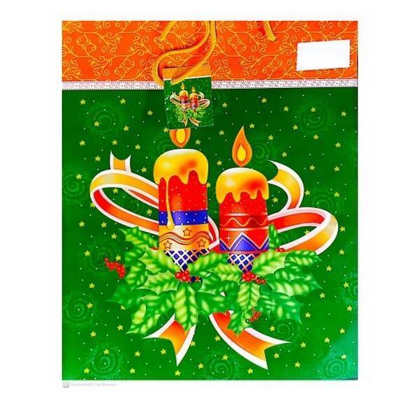 Design: Beeren, Kerze, Stechpalmenblätter, bedruckt, Sterne. Tragegriff, Geschenkanhänger. Anlass: Weihnachten.