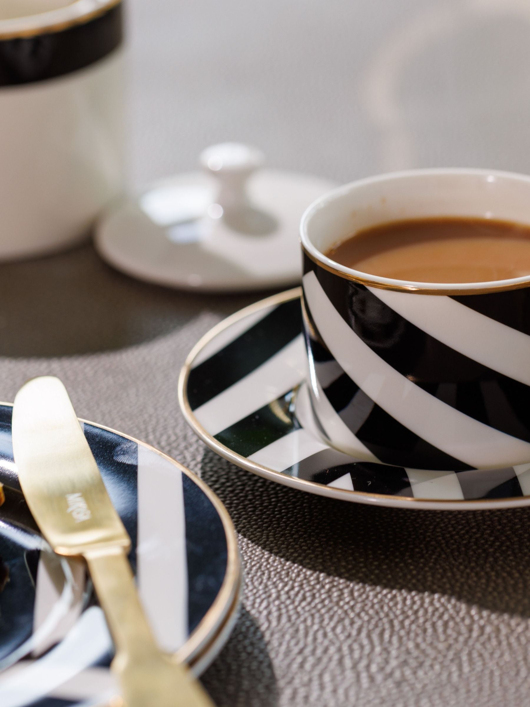 Dieses Geschenkset enthält zwei Teetassen und zwei passende Untertassen. Hergestellt aus feinem Porzellan für ein strahlend weißes Aussehen und besondere Langlebigkeit. Spülmaschinenfest, sodass Sie sie mühelos in Bestform halten können. Die in Großbritannien entworfenen Tassen und Untertassen haben eine zweijährige Garantie. Die Luxe Deco-Serie, die im britischen Studio von Mikasa entworfen wurde, ist von den zeitlos eleganten Art-Deco-Designs der 1920er-Jahre inspiriert. Beginnen Sie Ihre Sammlung doch mit diesen wunderschönen, gemusterten Teetassen. Jede Tasse besticht durch breite Streifen, die von einem Rand aus echtem Gold eingefasst werden. Sie sind mühelos stilvoll – und ein wenig glamourös. Alle Tassen sind aus robustem, feinem Porzellan gefertigt und fühlen sich angenehm an. Spülmaschinenfest. Die Lieferung erfolgt in einer Geschenkbox – das perfekte Geschenk für eine modebewusste Freundin. Fassungsvermögen: 200 ml.