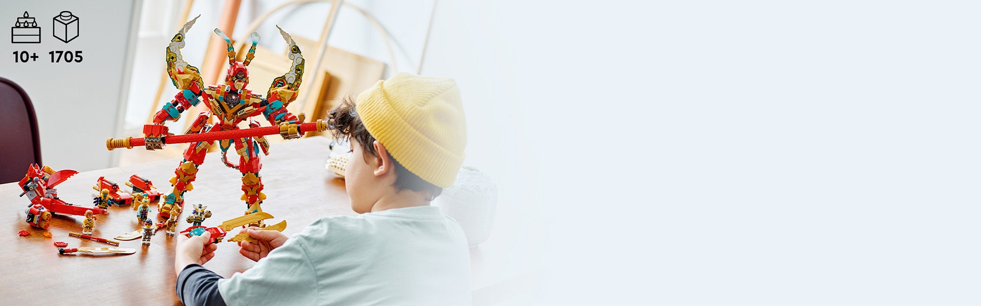 Das Set enthält 6 Minifiguren: den Affenkönig, eine stärkere Version von Monkie Kid, den Gelben Elefanten, den Azurblauen Löwen, den Goldflügeladler und die Originalversion von Mr. Tang. Mit der LEGO Builder App erleben Kinder ein einfaches und intuitives Bauabenteuer. Hier können sie Modelle in 3D vergrößern und drehen, Sets speichern und ihren Baufortschritt verfolgen.