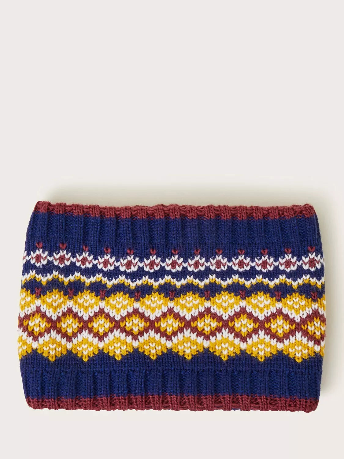 Damit Ohren, Nase und Hals Ihres Babys schön warm bleiben. Dieser Strickschal mit Fair-Isle-Muster in warmen Herbstfarben sorgt dafür, dass es Ihr Kind die ganze Saison über kuschelig warm hat.