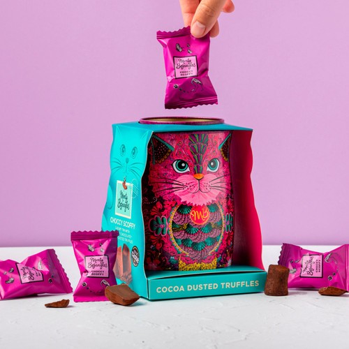 Monty Bojangles presents intensely chocolatey wonders in this collectable Persian Pink Cat Tin. These delicately soft luxury chocolate truffles offer an indulgent and scrummy experience with rich, mouth-watering flavours. This distinctive, charming packaging makes them suitable for presentation on special occasions throughout the year.