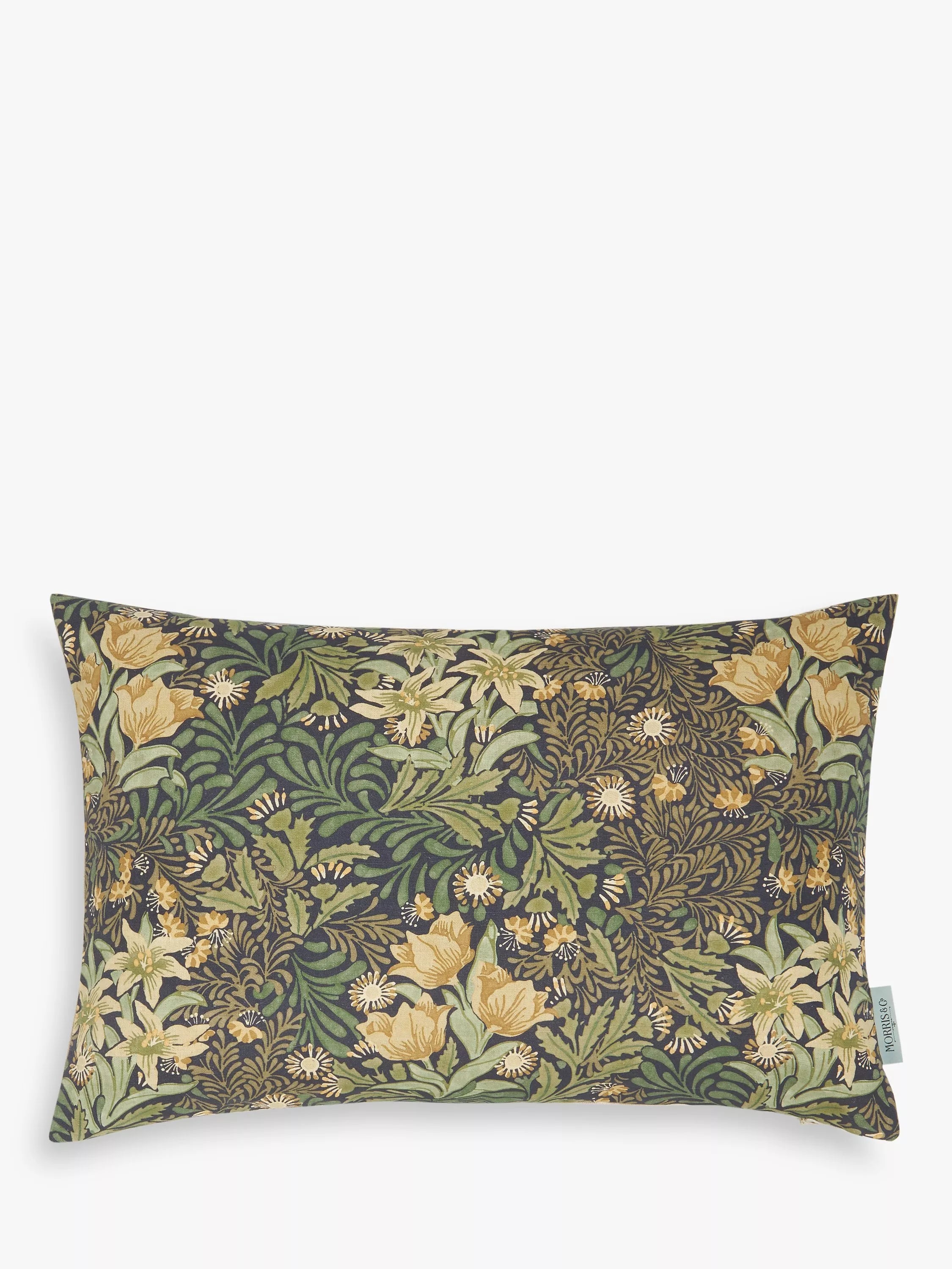 Holen Sie sich mit diesem exquisiten rechteckigen Kissen den Charme eines William-Morris-Gartens nach Hause. Sein sattes Indigo-Design, ein eingetragenes Muster aus dem Jahr 1877, verleiht jedem Raum zeitlose Eleganz. Perfekt, um Ihrem Wohn- oder Schlafzimmer eine stilvolle Note zu verleihen.