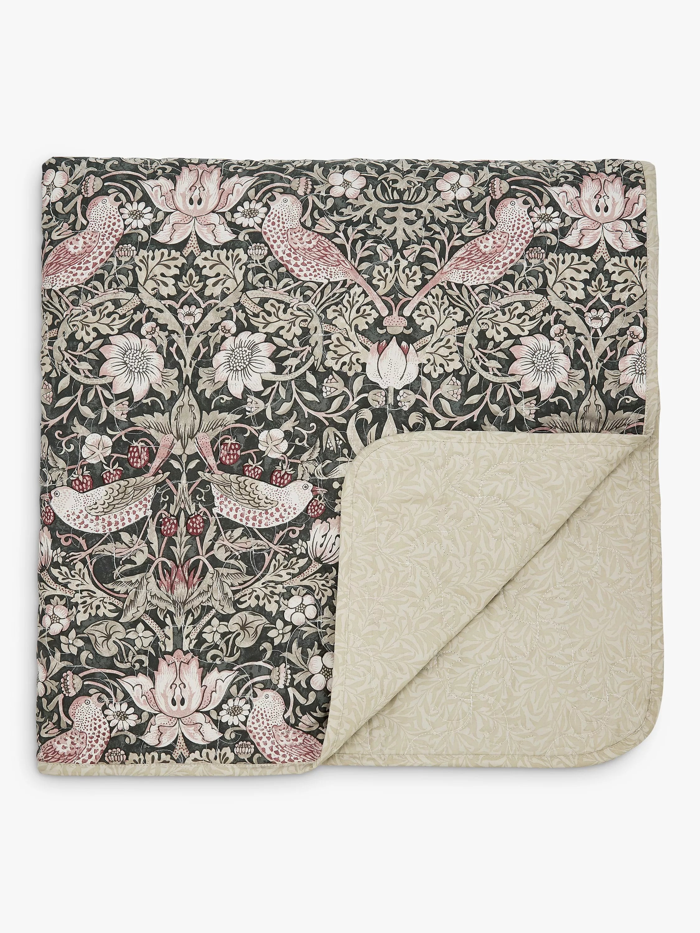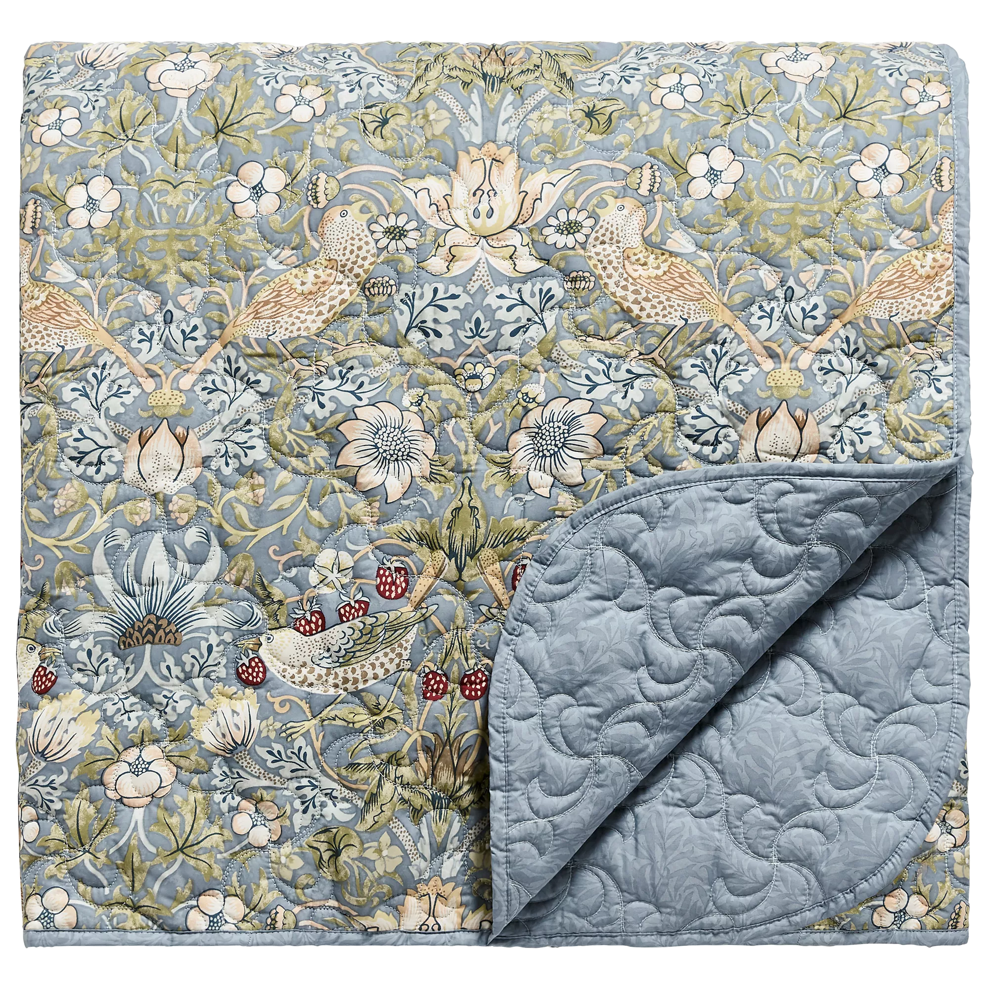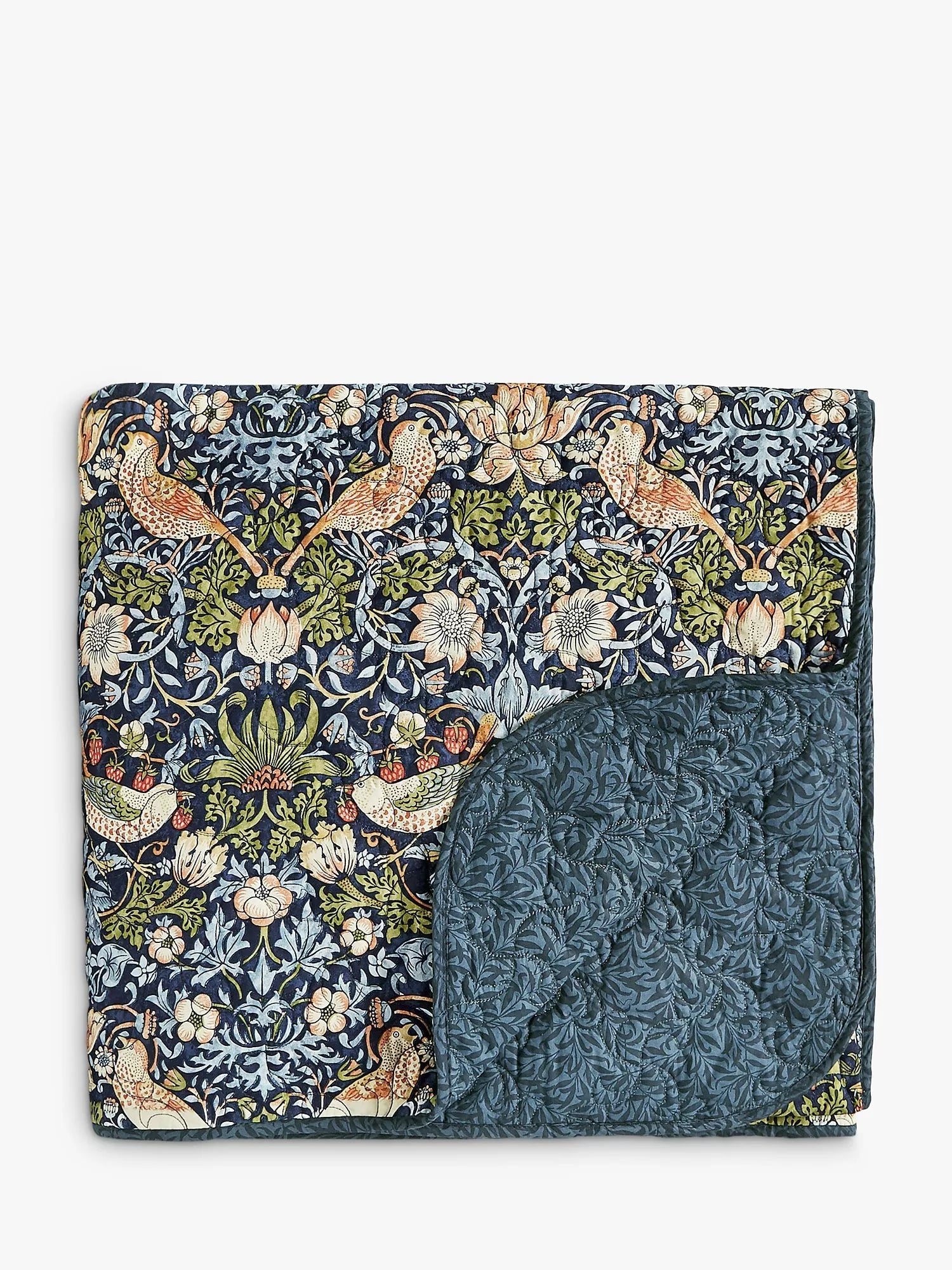 Diese Tagesdecke ist aus weicher und atmungsaktiver Baumwolle mit einer luxuriösen Fadendichte von 300 gefertigt, die sich wunderbar auf der Haut anfühlt. Sie zeichnet sich durch klassische Steppung und den Strawberry Thief-Druck aus, der von William Morris im späten 19. Jahrhundert entworfen wurde und von den frechen Drosseln inspiriert war, die Früchte aus seinem Landhaus in Oxfordshire stahlen.