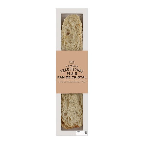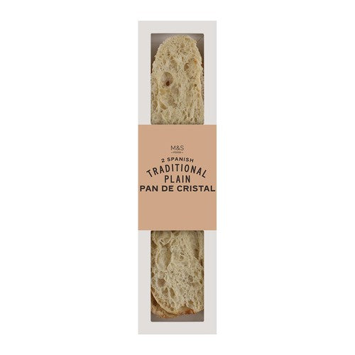 This MS product provides two loaves of Spanish Traditional Plain Pan De Cristal, designed to bring authentic flavour to your table. This light, crisp bread is perfect for toasting and preparing delicious appetisers quickly and easily.