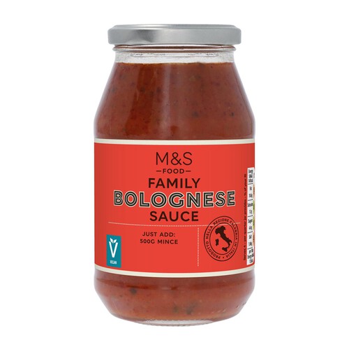 This M&S Family Bolognese Sauce is crafted using an exclusive recipe, making it a convenient staple for quick family meals. It is slowly simmered to develop a rich, deep flavour profile ready for your dinner table.