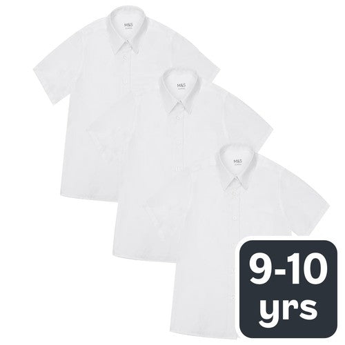 This M&S short sleeve shirt is supplied in a convenient, extra-value three pack for ready stock. These essential school blouses feature timesaving Easy to Iron technology for quick preparation after washing. All cotton used for M&S clothing is sourced exclusively in a sustainable manner. This garment provides dependable comfort throughout the school day due to its classic Regular Fit.