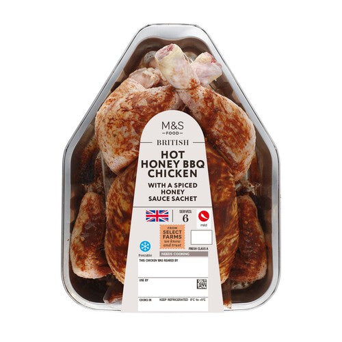 This whole chicken, sourced directly from M&S Select Farms, is ready for easy oven preparation. It comes pre-seasoned with a blend of spices and a hint of sweetness, promising quality flavour.