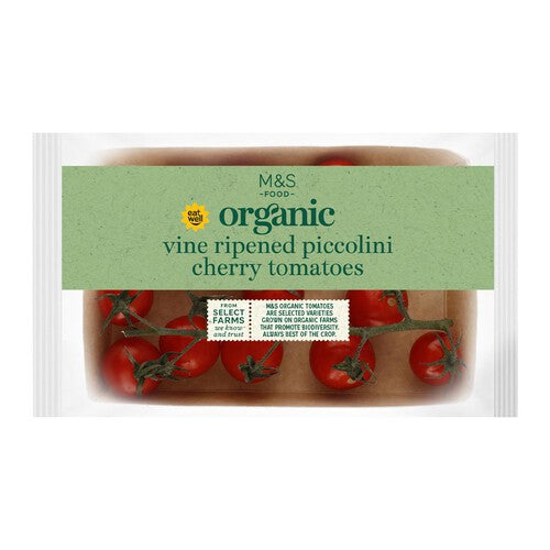 These M&S Organic Piccolini cherry tomatoes are carefully grown according to organic standards and ripened naturally on the vine. They achieve a high Class I rating, ensuring excellent quality and flavour consistency. These small tomatoes are an excellent addition to salads or light snacks.