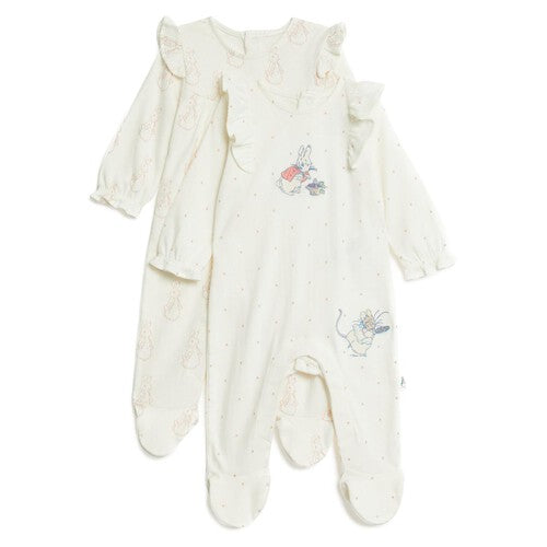 Read MoreChoose from two adorable Peter Rabbit prints with this two-pack of pure cotton sleepsuits. Easy front popper fastenings with a special copper popper to make dressing even quicker. Babysafe toes, anti-slip soles and integral mitts keep your little one safe and comfy. Frilled collars add a charming detail. We only ever use responsibly sourced cotton for M&S' clothes.