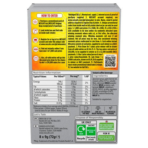 Nescafe Original 2in1 offers a blend of coffee and creamer for a quick, satisfying cup. This blend is crafted using coffee beans that are 100% responsibly sourced. Every serving delivers a smooth taste experience coupled with a rich aroma. Enjoy a quality cup that also supports sustainable farming practices for coffee producers globally.