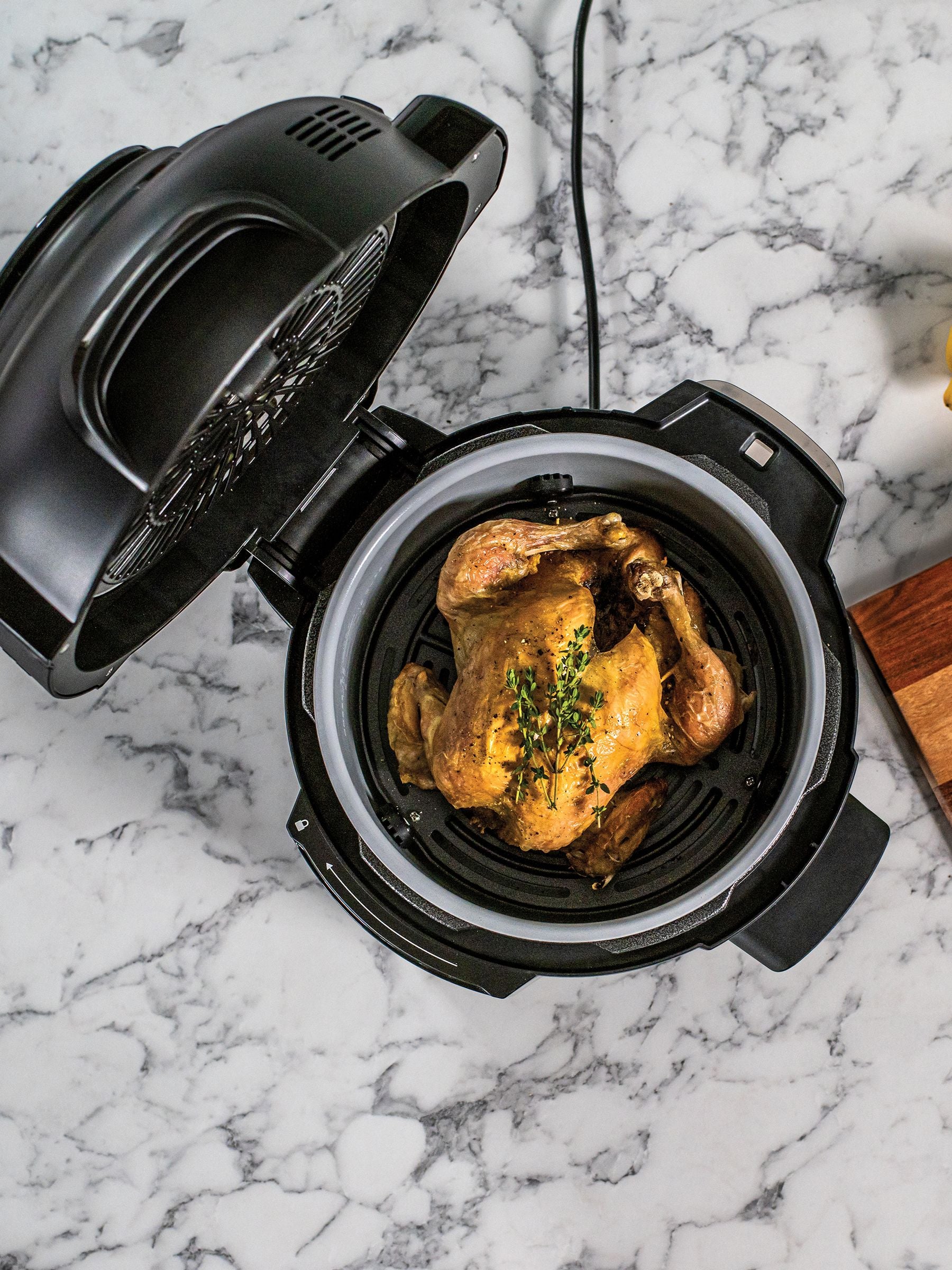 Dank des Zwei-Deckel-Designs können Sie im selben Topf unter Druck garen und knusprig braten – wechseln Sie einfach vom Druckdeckel zum Knusperdeckel, um Ihren Speisen eine köstliche Kruste zu verleihen. Genießen Sie goldbraun gebratene Hähnchenbrust, knusprige Pommes frites, saftige Steaks, fluffige Frittatas, Käse mit knuspriger Kruste und vieles mehr.