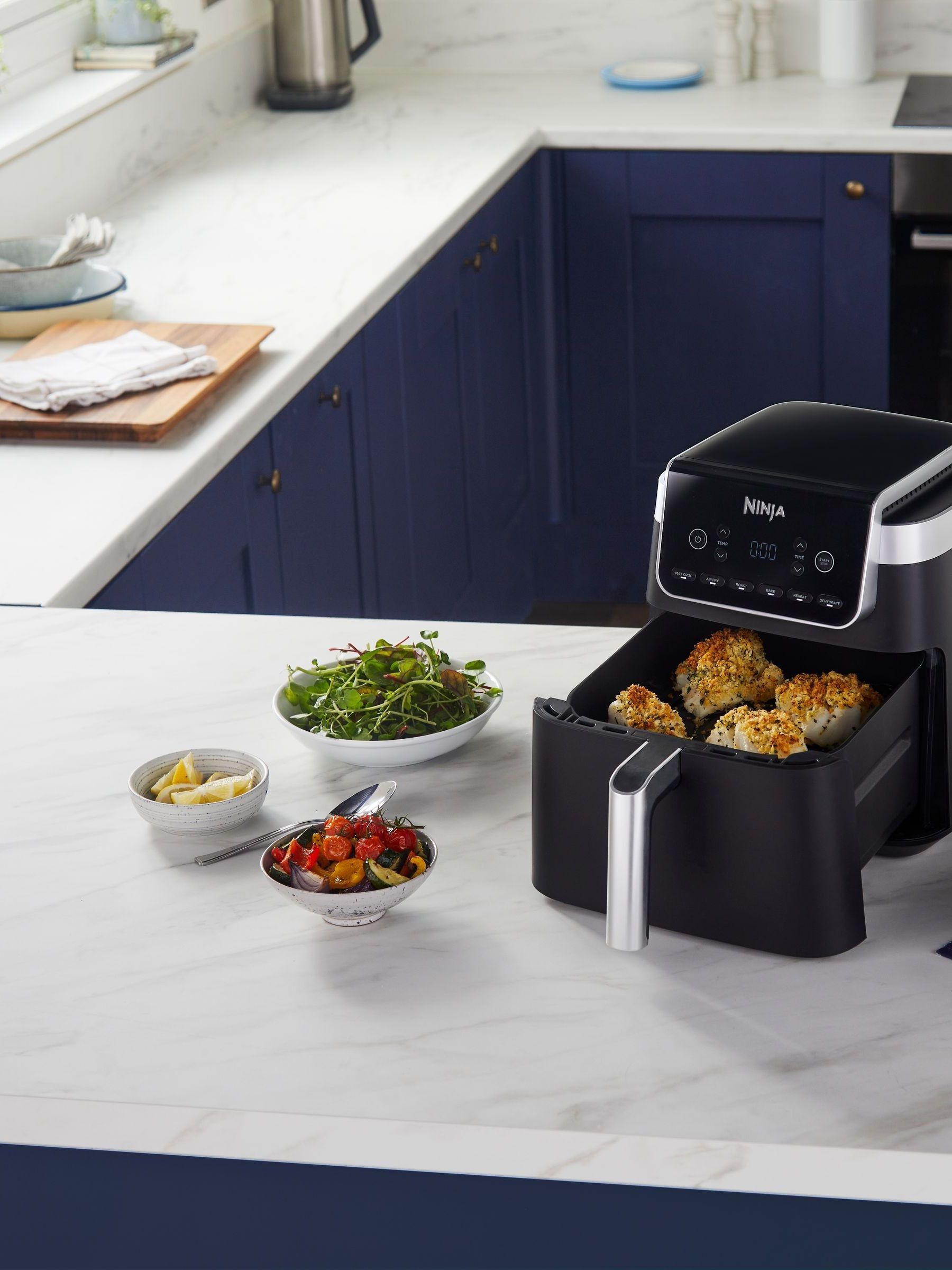 Gesünder frittieren, mehr Fassungsvermögen. Suchen Sie eine kompakte Heißluftfritteuse, die genug für Ihren ganzen Haushalt zubereiten kann, ohne Ihre gesamte Küchenarbeitsfläche einzunehmen? Die Ninja Air Fryer MAX PRO nutzt jeden Zentimeter Arbeitsfläche optimal aus und bietet Platz für bis zu 4 Hähnchenbrüste in der großen 6,2-Liter-Schublade. Perfekt, egal ob Sie für sich allein oder für bis zu vier Personen kochen.