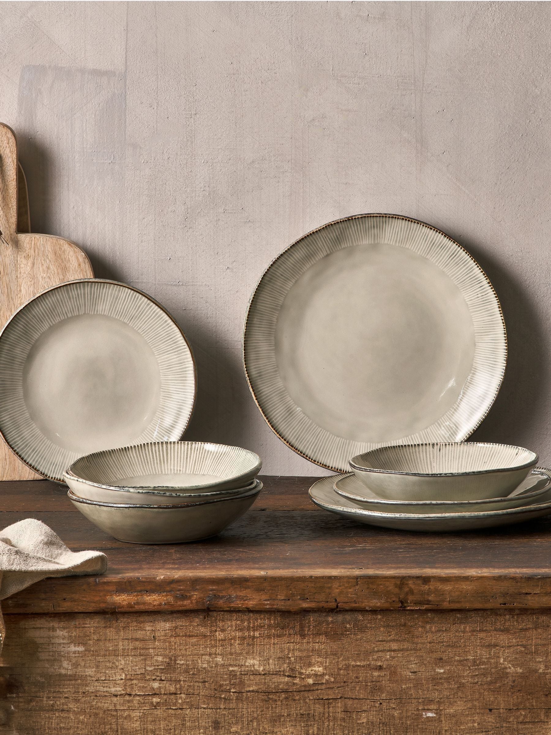 Verleihen Sie Ihrem Tisch mit den sanften, natürlichen Farbtönen der Malia-Essgeschirrkollektion einen frischen Look. Dieses 12-teilige Keramikset enthält alles, was Sie für vier Gedecke benötigen – vier Speiseteller, vier Dessertteller und vier Schüsseln.