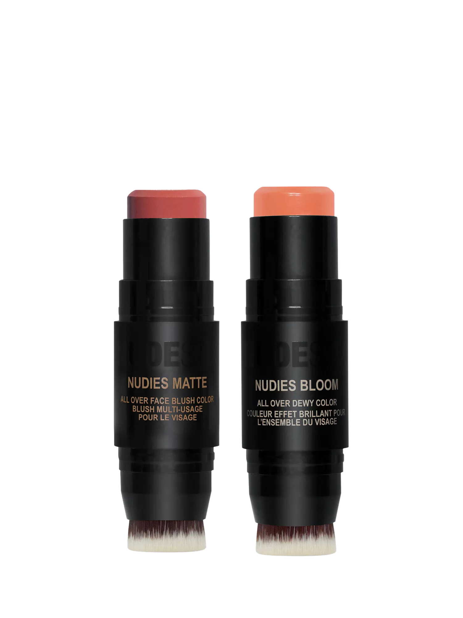 Nudies Matte Blush & Bronze ist ein All-in-One-Produkt: ein weiches, mattes Rouge für die Wangen, ein natürlicher Lidschatten und ein cremiger Lippenstift.
