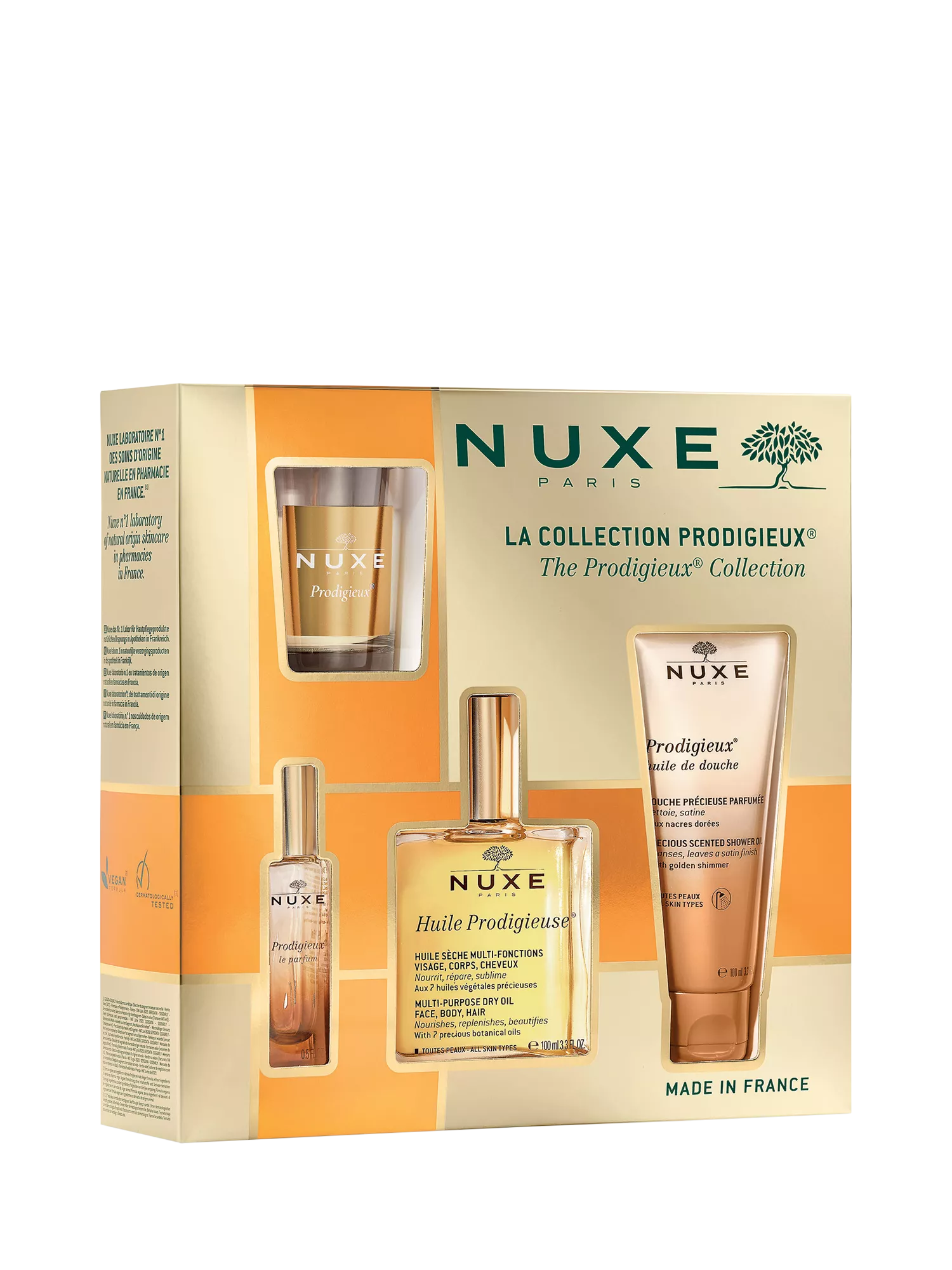 Genießen Sie die intensive Sinnlichkeit der Prodigieuse®-Reihe mit ihrem ikonischen Sonnenduft in diesem Nuxe Prodigieux® Set.
