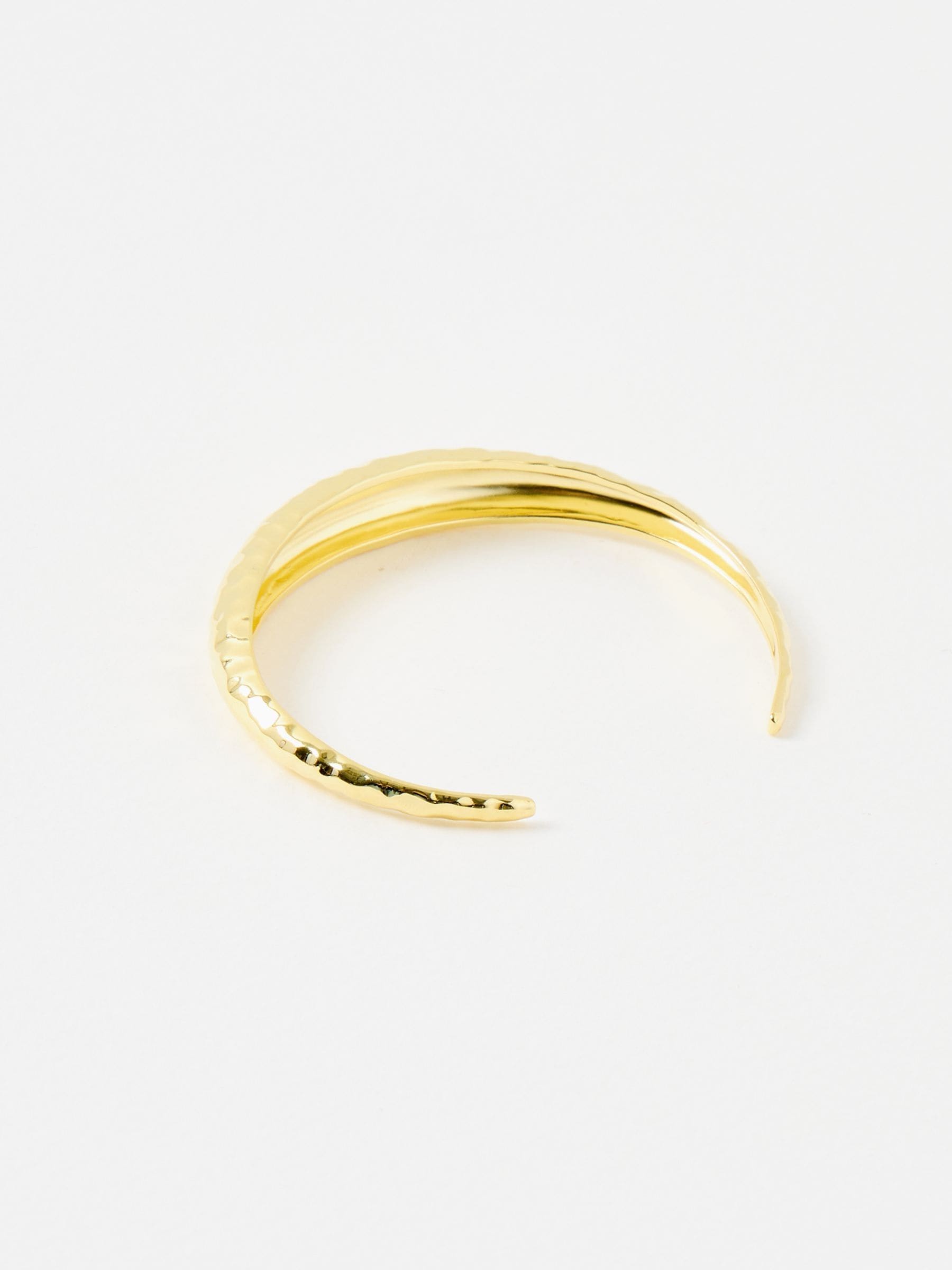 Dieser sich verjüngende Goldarmreif hat eine leicht gehämmerte Oberfläche und einen Hochglanz-Effekt und eignet sich perfekt zum Kombinieren mit anderen Goldarmreifen für einen strukturierten Lagenlook.