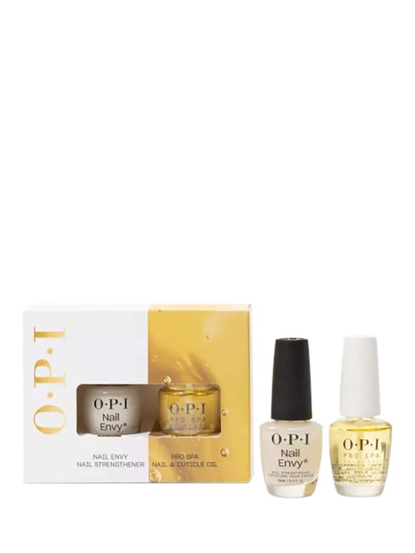 Achieve enviable nails with this OPI power duo, perfect for a self-care ritual. This set combines a strengthening nail envy and a nourishing cuticle oil, leaving your nails looking and feeling healthier.