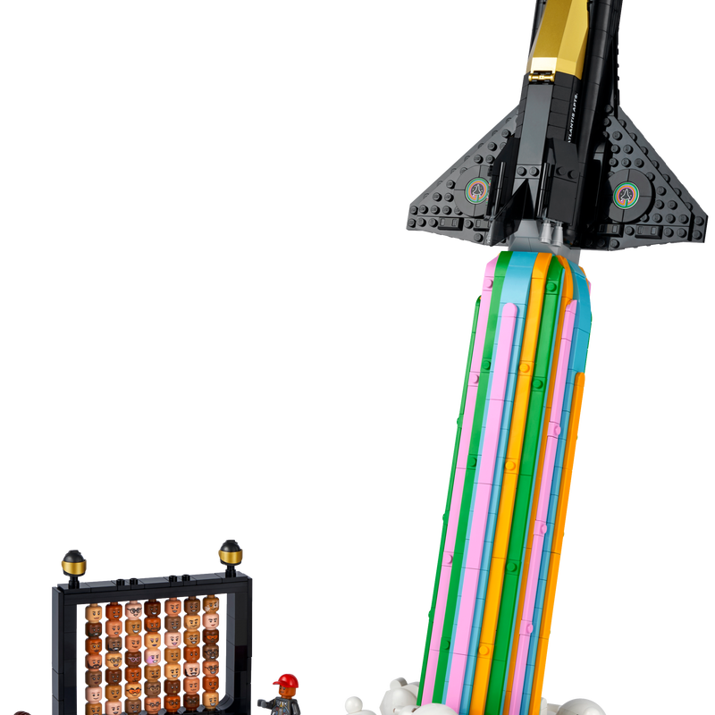 Begib dich mit dem LEGO® Icons Bauprojekt „Über den Mond mit Pharrell Williams“ (10391) auf eine fantastische Reise für Erwachsene. Schon als Kind beflügelten Pharrells kreativer Optimismus und seine Umgebung in den Atlantis Apartments seine Neugier und boten ihm die Grundlage, um die Zukunft zu gestalten, die er sich für sich und andere wünschte. Das inspirierende Ausstellungsmodell zeigt ein Space Shuttle, das von einem farbenfrohen Jetstream zu den Sternen angetrieben wird. Das Set enthält außerdem die Astronauten-Minifiguren Pharrell Williams und Helen Williams sowie 49 austauschbare Köpfe.