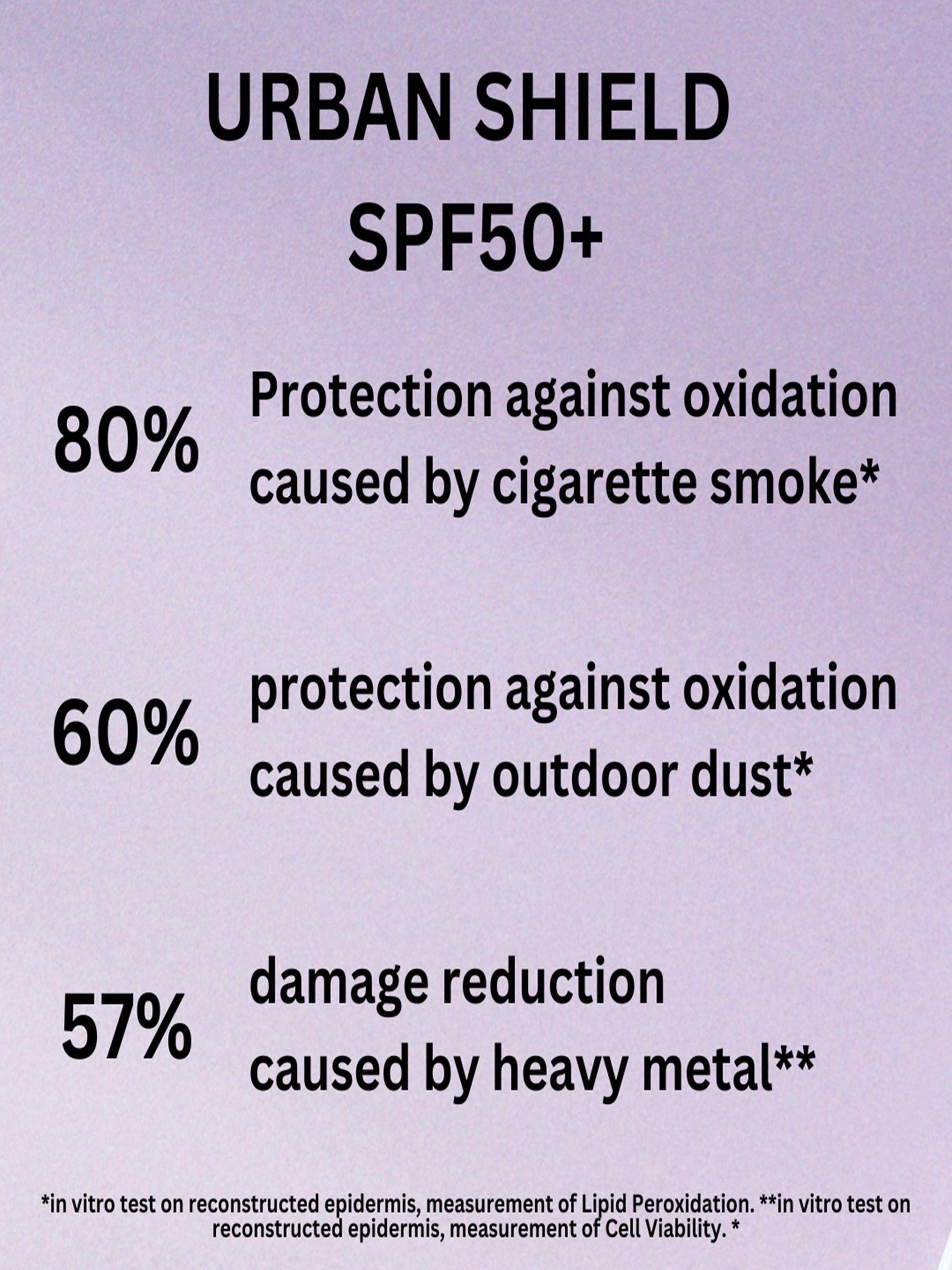 Die Formel zieht schnell ein, ist augenverträglich, nicht komedogen und eignet sich als Make-up-Grundlage. Dank unserer Triple Protection Technology bietet sie bis zu 10 Stunden Schutz, den doppelten von der EU geforderten UVA-Schutz und ist sehr wasserfest. Urban Shield ist dermatologisch getestet, auch für empfindliche Haut geeignet und frei von Duftstoffen.